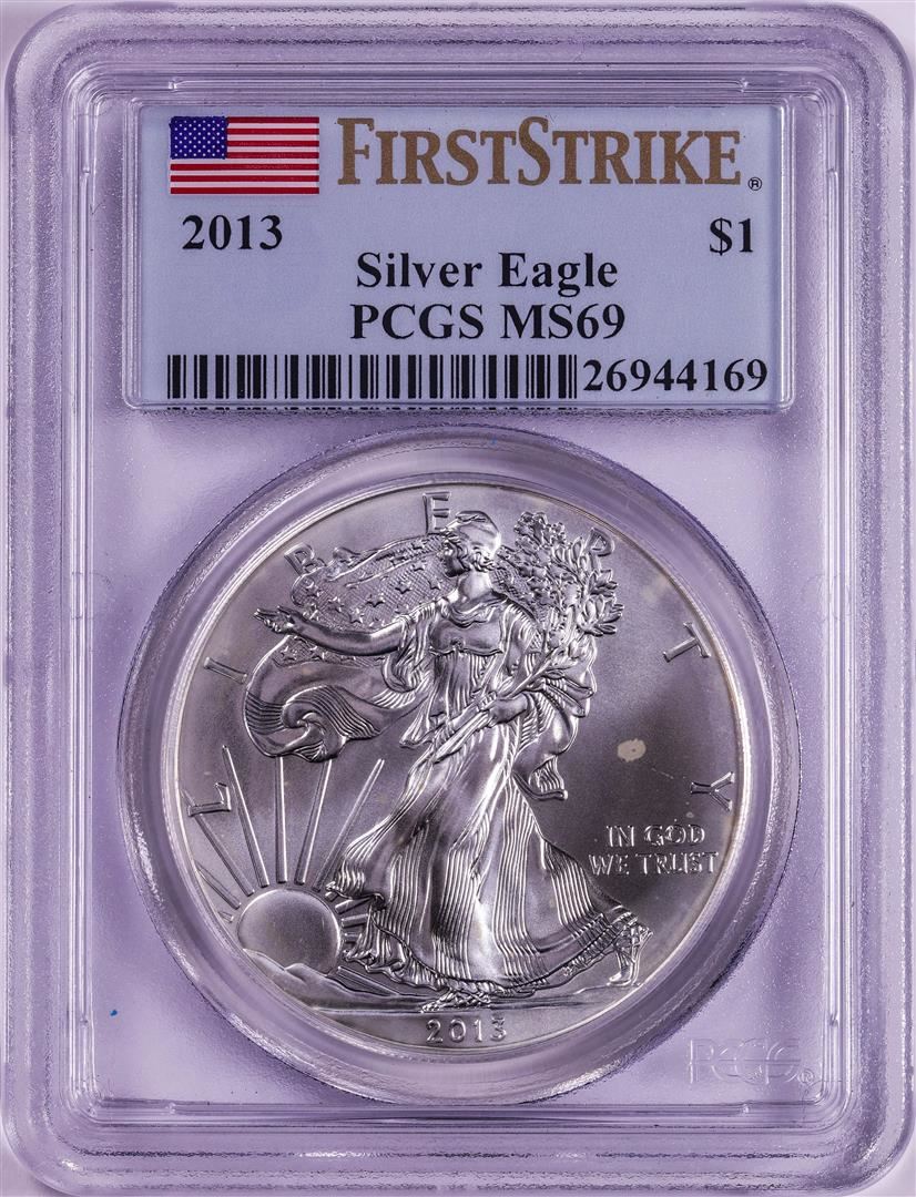 One 2013 $1 American Silver Eagle Coin PCGS MS69 First Strike. PCGS Graded.