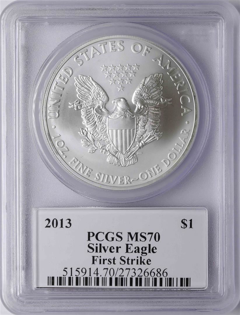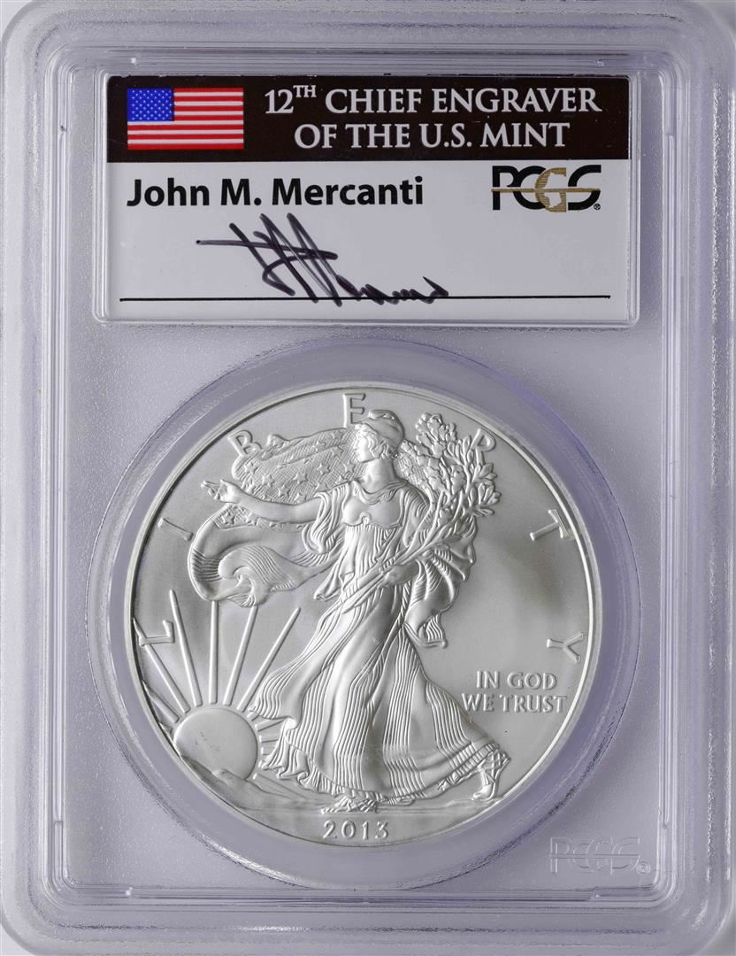 2013 $1 American Silver Eagle Coin PCGS MS70 First Strike Mercanti Signature
