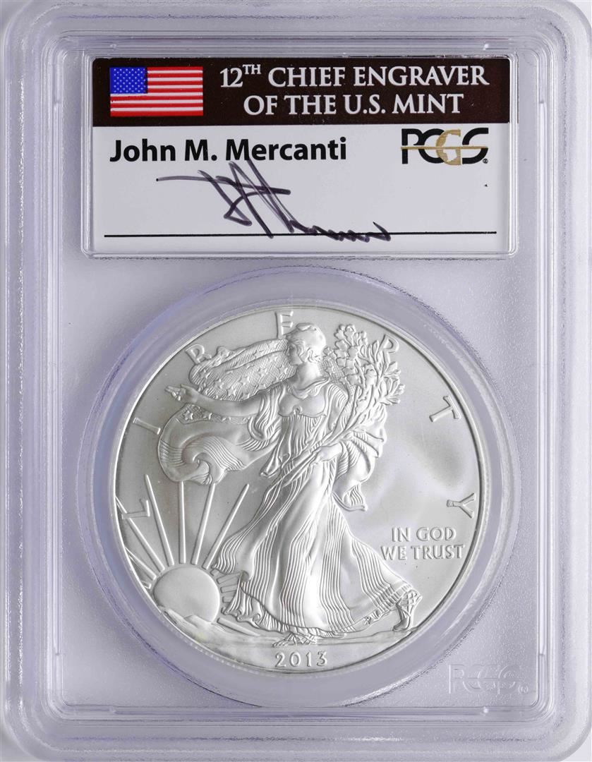 2013 $1 American Silver Eagle Coin PCGS MS70 First Strike Mercanti Signature