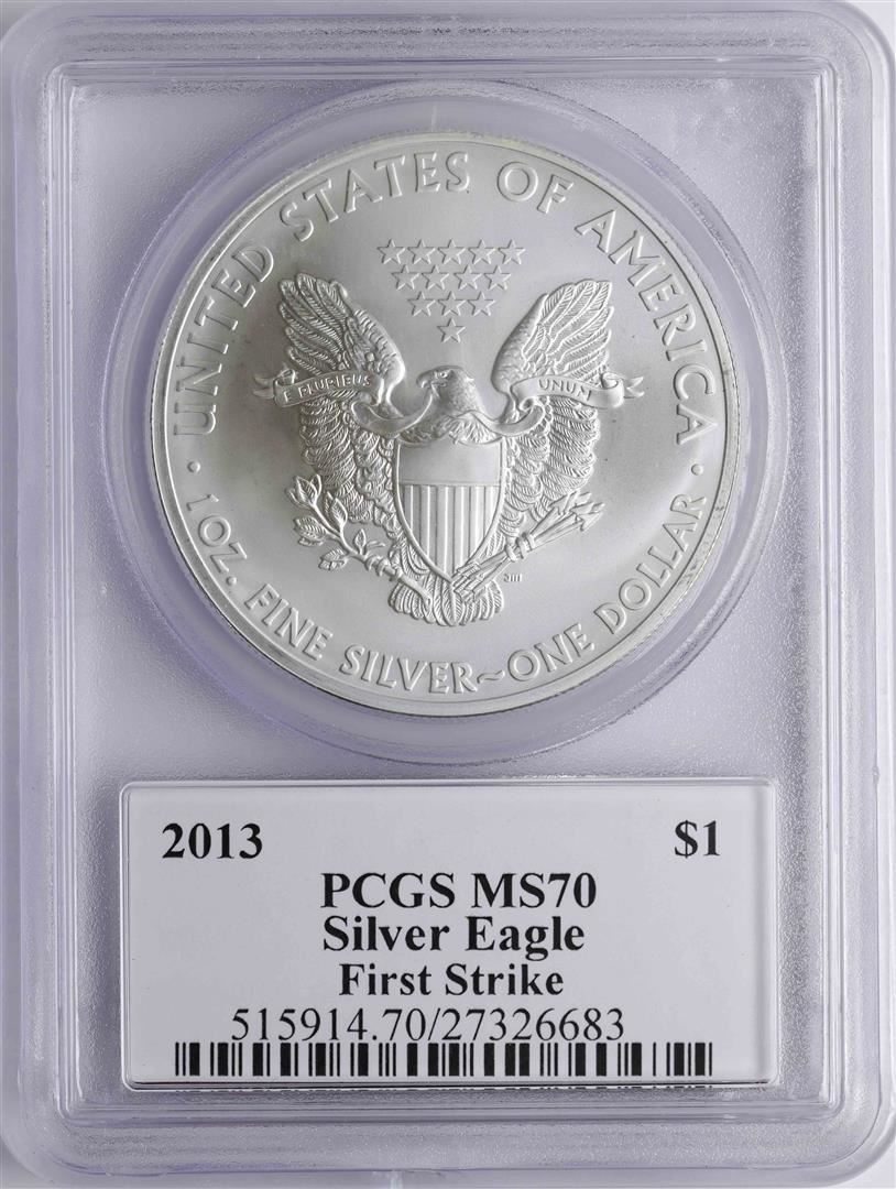 One 2013 $1 American Silver Eagle Coin PCGS MS70 First Strike Mercanti Signature. PCGS Graded.