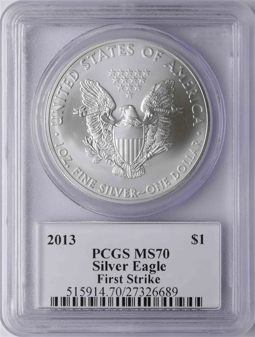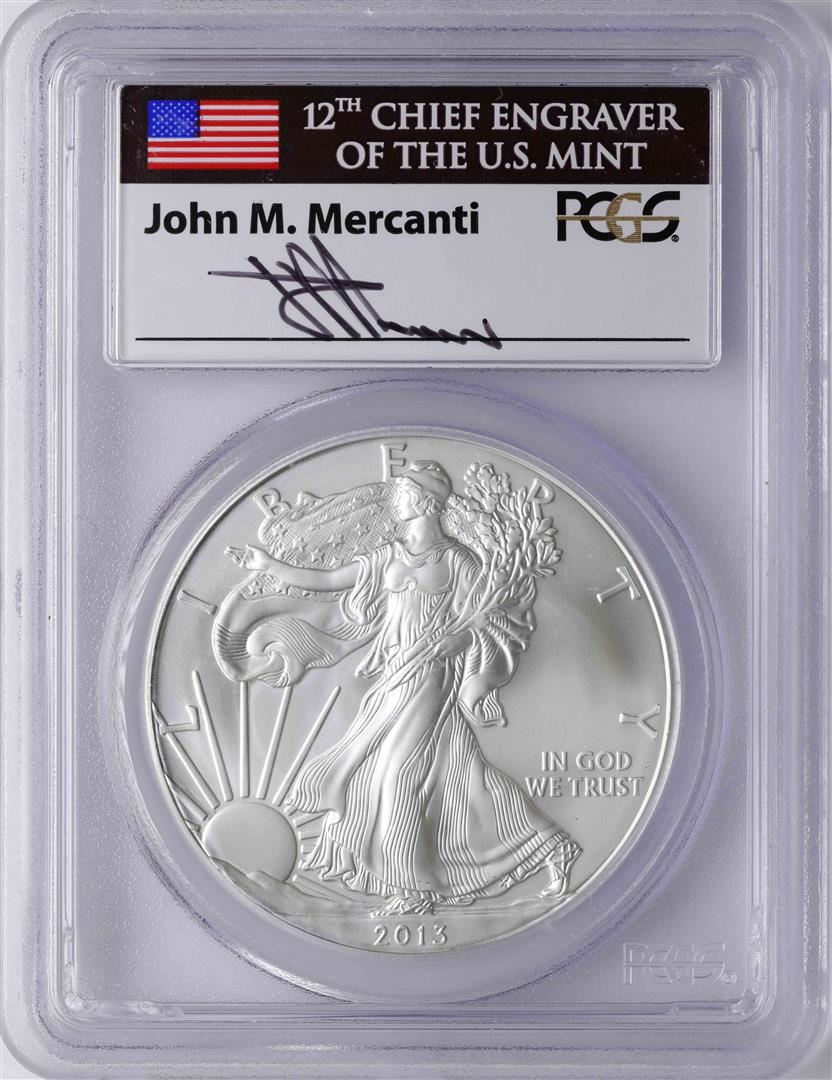 2013 $1 American Silver Eagle Coin PCGS MS70 First Strike Mercanti Signature