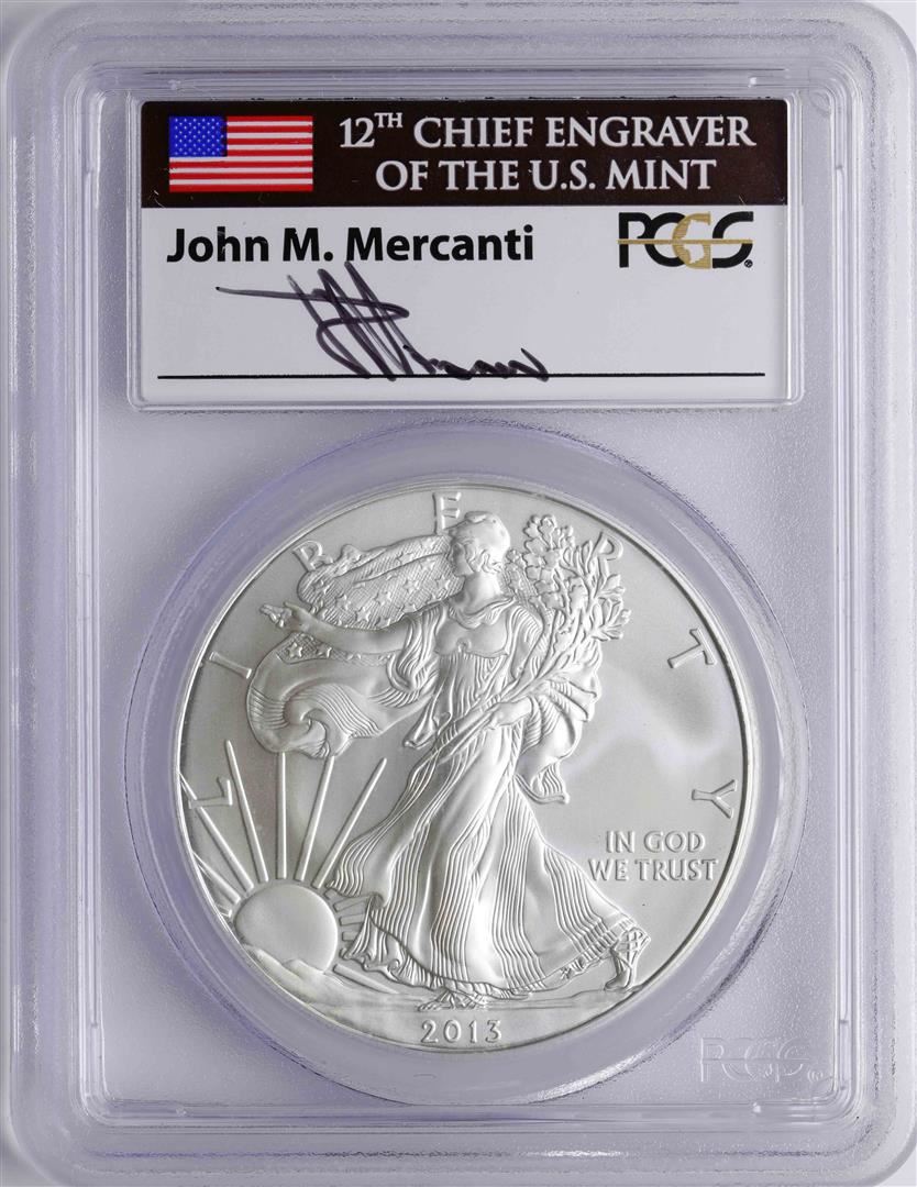 2013 $1 American Silver Eagle Coin PCGS MS70 First Strike Mercanti Signature