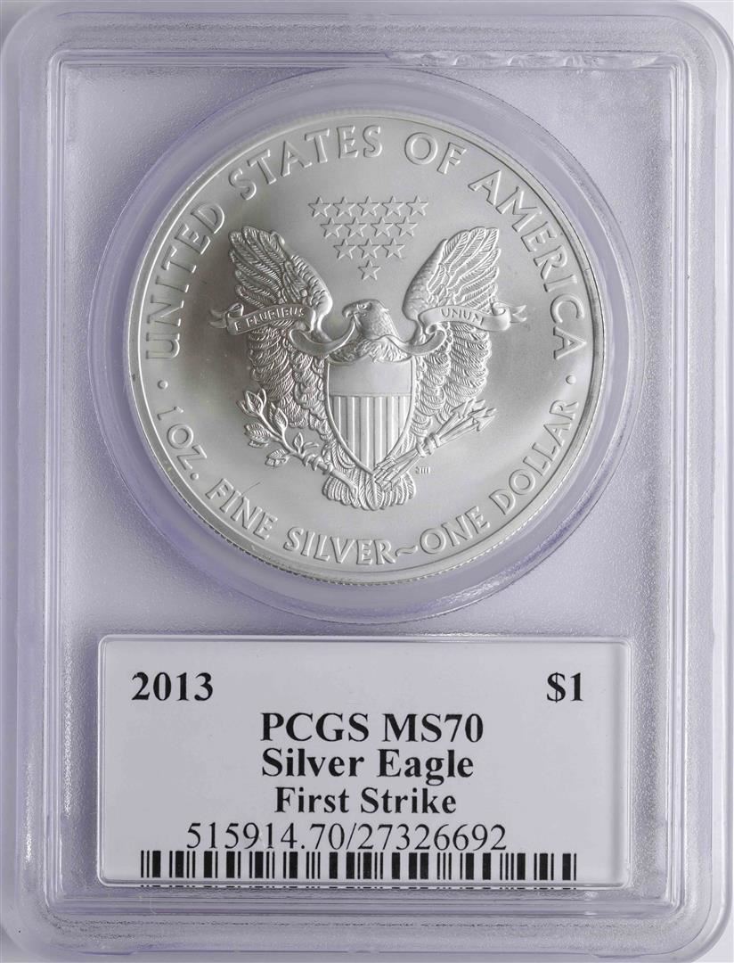 One 2013 $1 American Silver Eagle Coin PCGS MS70 First Strike Mercanti Signature. PCGS Graded.