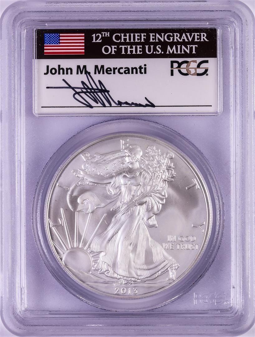 2013 $1 American Silver Eagle Coin PCGS MS70 First Strike Mercanti Signature