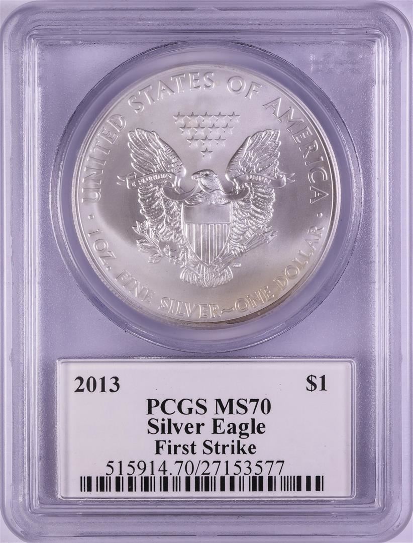 One 2013 $1 American Silver Eagle Coin PCGS MS70 First Strike Mercanti Signature. PCGS Graded.
