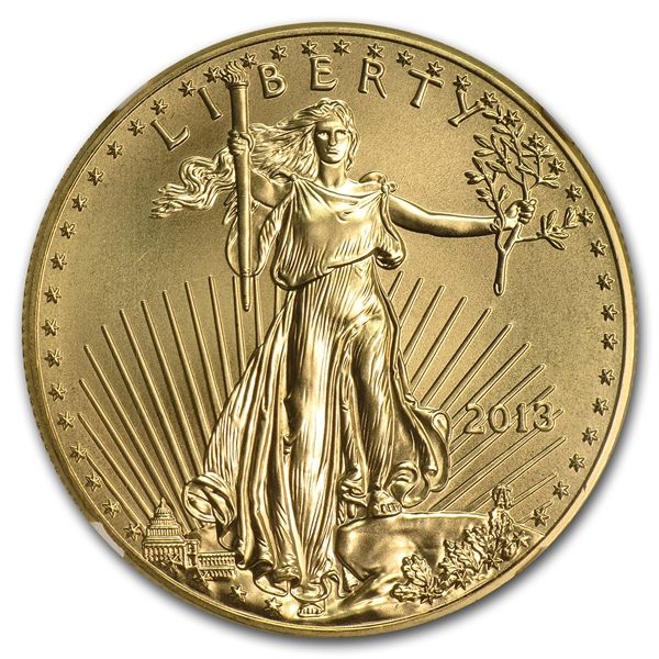 2013 1 oz Gold American Eagle MS-69 NGC Early Releases **|**|** 2013 1 oz Gold American Eagle MS-69 NGC Early ReleasesYear ***2013Grade***MS-69Denomination**50Dim.**32.7Thick:**2.87mm ; MSRP: $5300