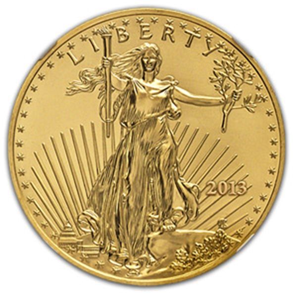 2013 1 oz Gold American Eagle MS-70 NGC Early Releases **|**|** 2013 1 oz Gold American Eagle MS-70 NGC Early ReleasesYear ***2013Grade***MS-70Denomination**50Dim.**32.7Thick:**2.87mm ; MSRP: $5500