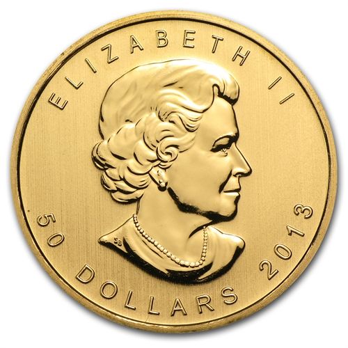 2013 1 oz Gold Canadian Maple Leaf **|**|** Year: 2013 ; Mint Mark: Brilliant Uncirculated ; Denomination: 50 Dollars ; MSRP: $2400