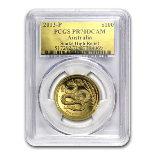 2013 1 oz Gold & Silver High Relief Proof Snake Set **|**|** 2013 1 oz Gold & Silver High Relief Proof Snake Set PCGS PR-70 ; MSRP: $3200