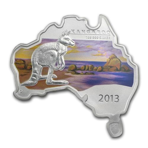 2013 1 oz Silver Australian Kangaroo - Map Shape ER MS- **|**|** 2013 1 oz Silver Australian Kangaroo - Map Shape ER MS-70 ; MSRP: $200