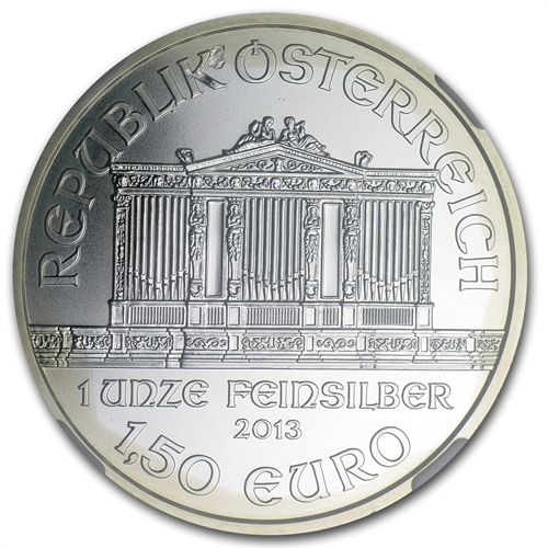 2013 1 oz Silver Austrian Philharmonic MS-69 NGC Mint E **|**|** 2013 1 oz Silver Austrian Philharmonic MS-69 NGC Mint Error ; MSRP: $100
