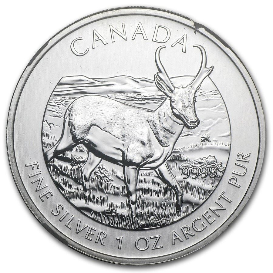 2013 1 oz Silver Wildlife Series Antelope MS-66 NGC (Mint Error)