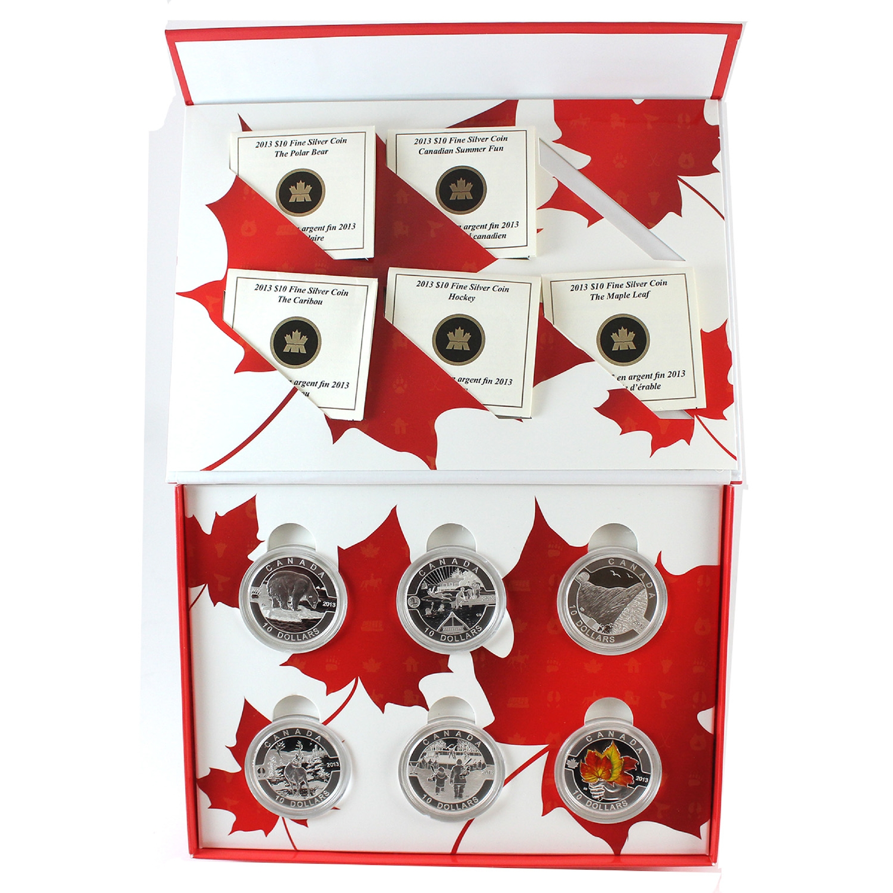 Each coin is 1oz .9999 Silver. The Maple Leaf includes selective colour. Niagara Falls missing COA. (Tax Exempt)