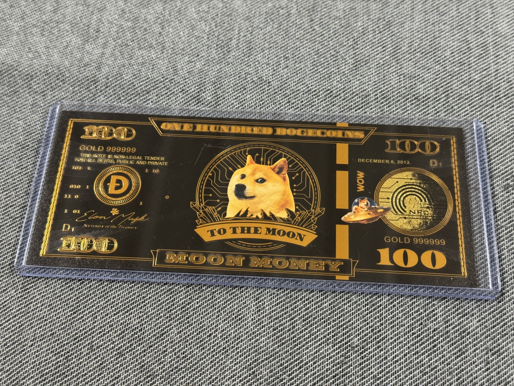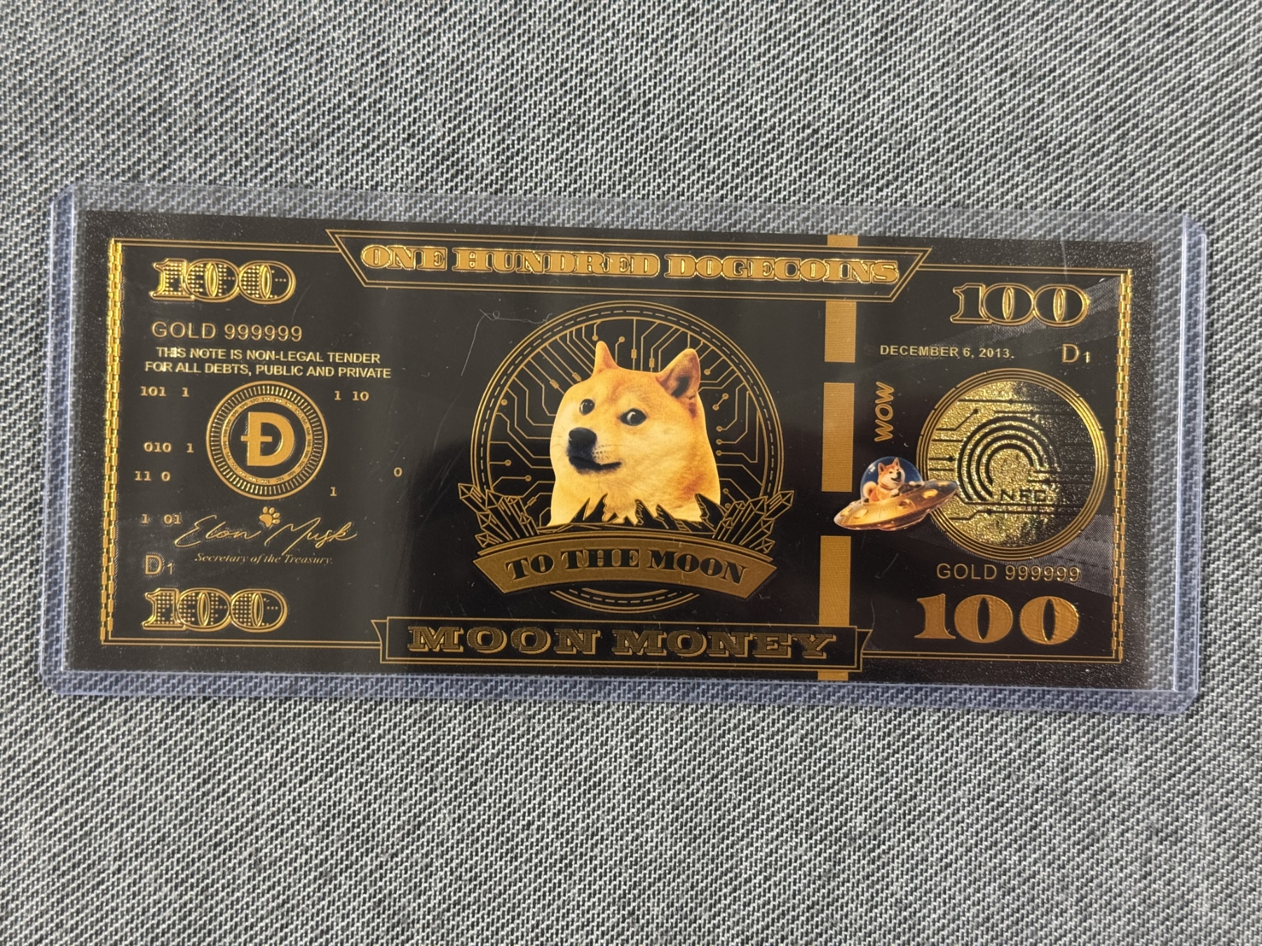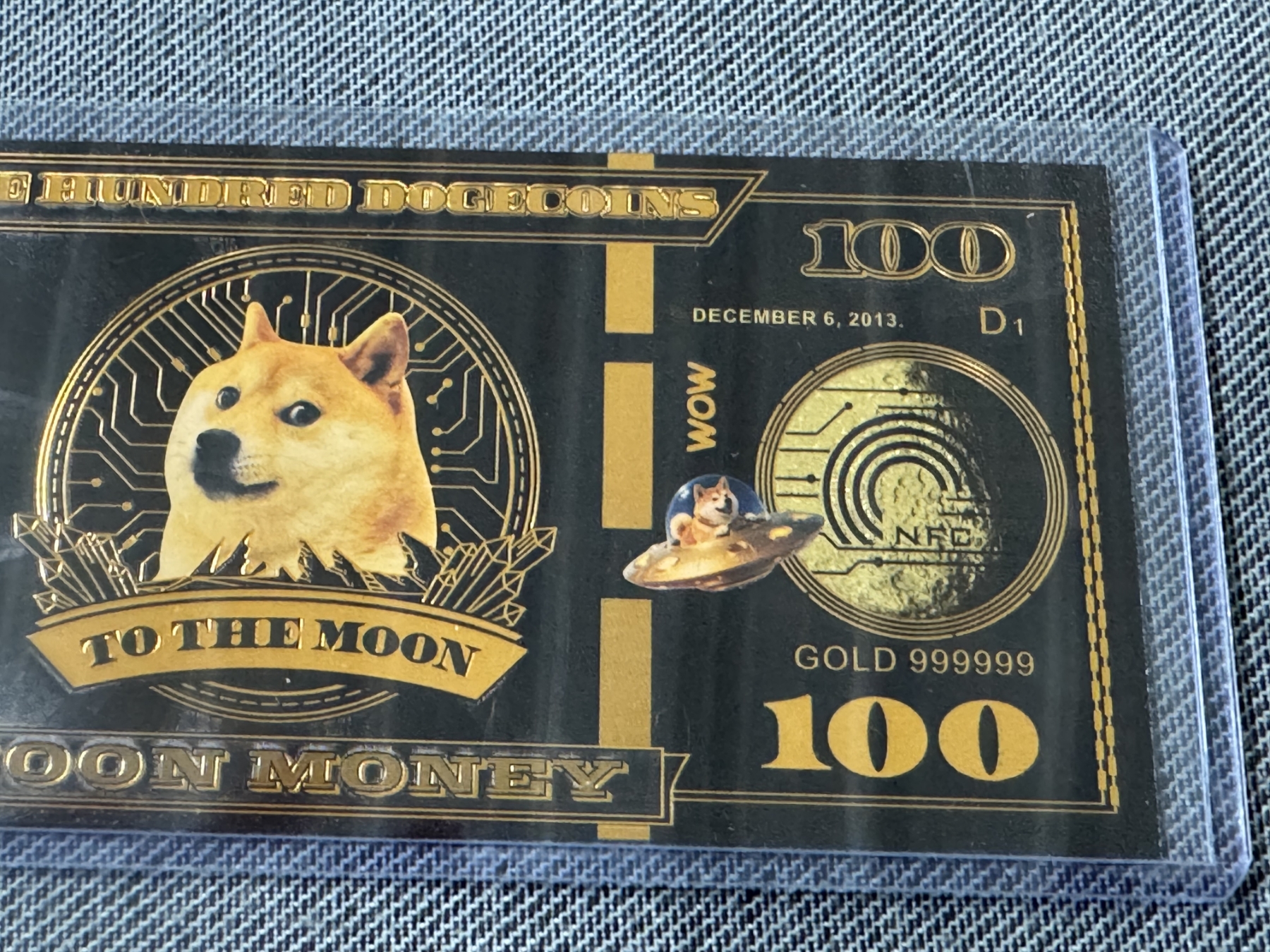2013 $100 Doge Coin Moon Money ,999999 24K Gold Back - Mint Condition