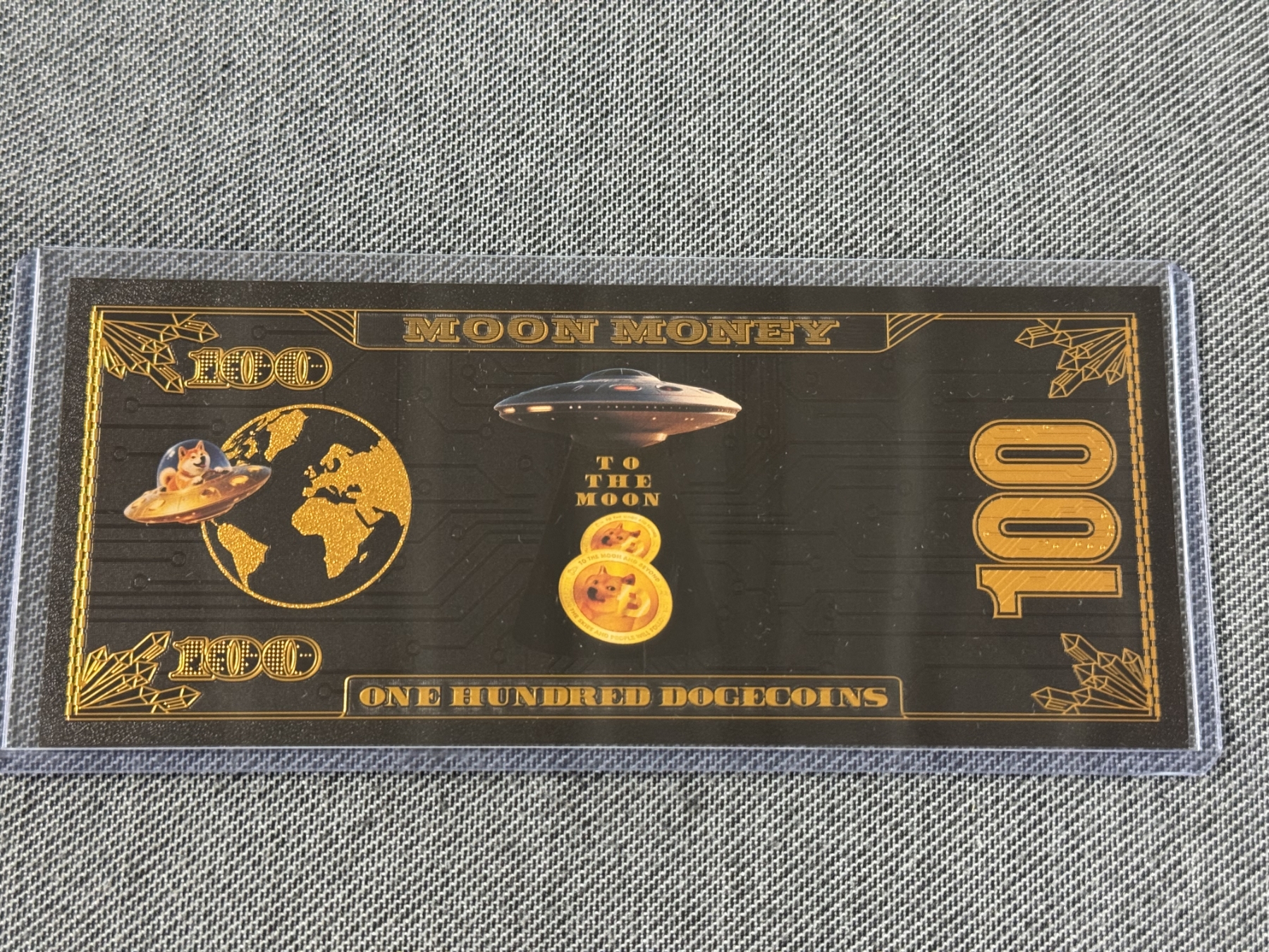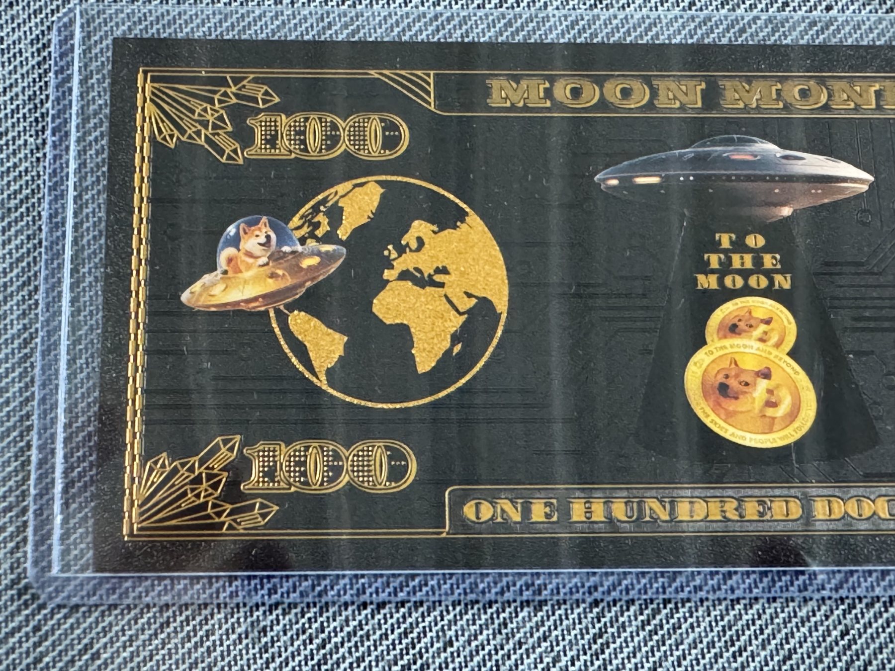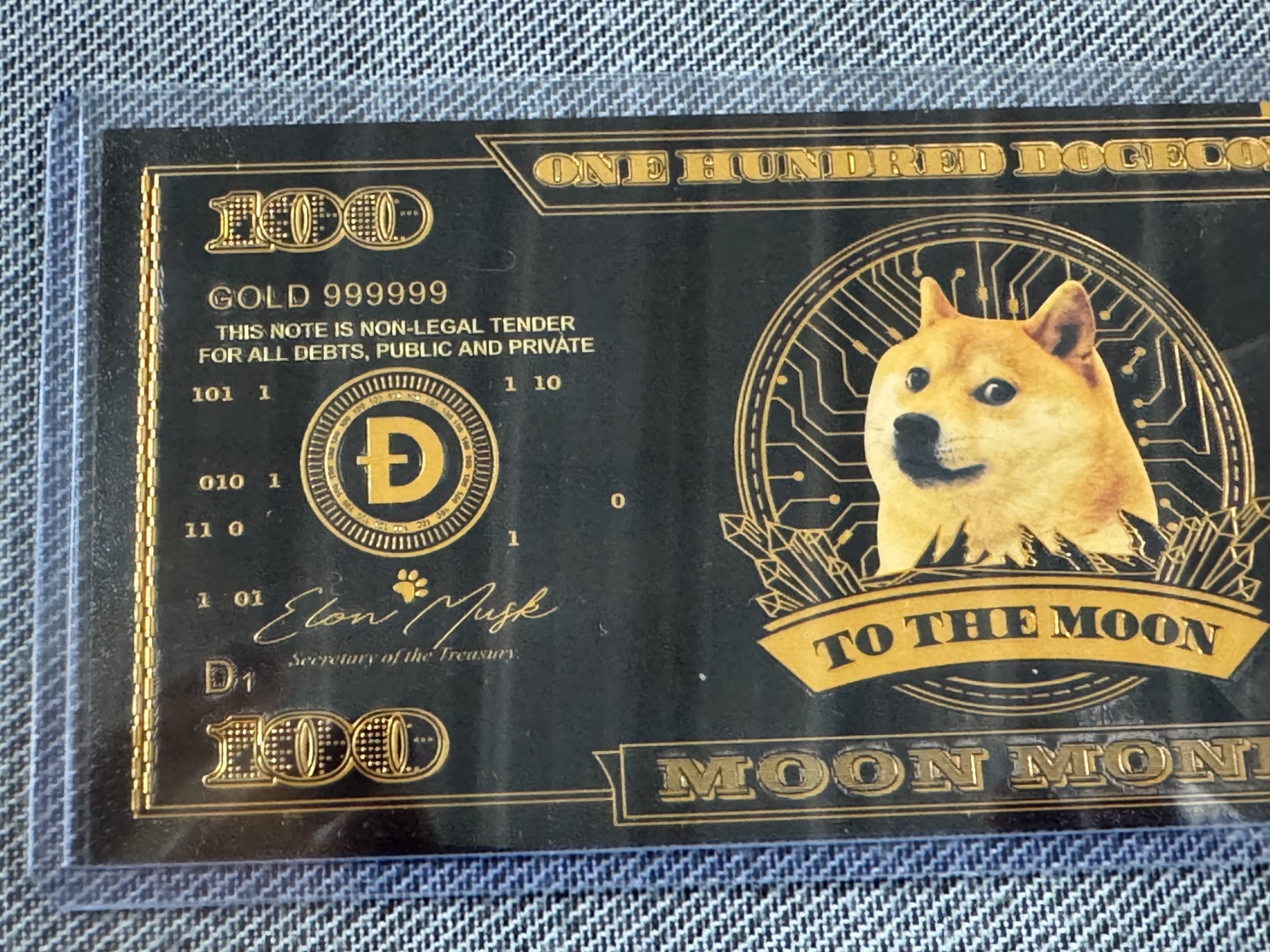 2013 $100 Doge Coin Moon Money ,999999 24K Gold Back - Mint Condition