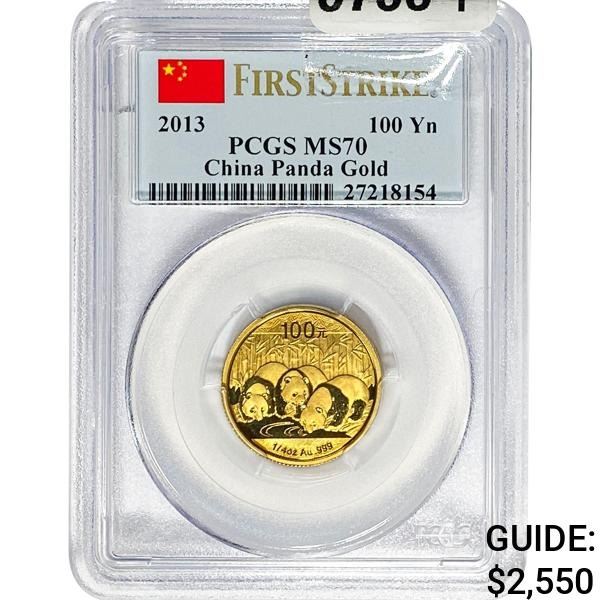 2013 100 YN China Panda Gold 1/4 0Z PCGS MS70