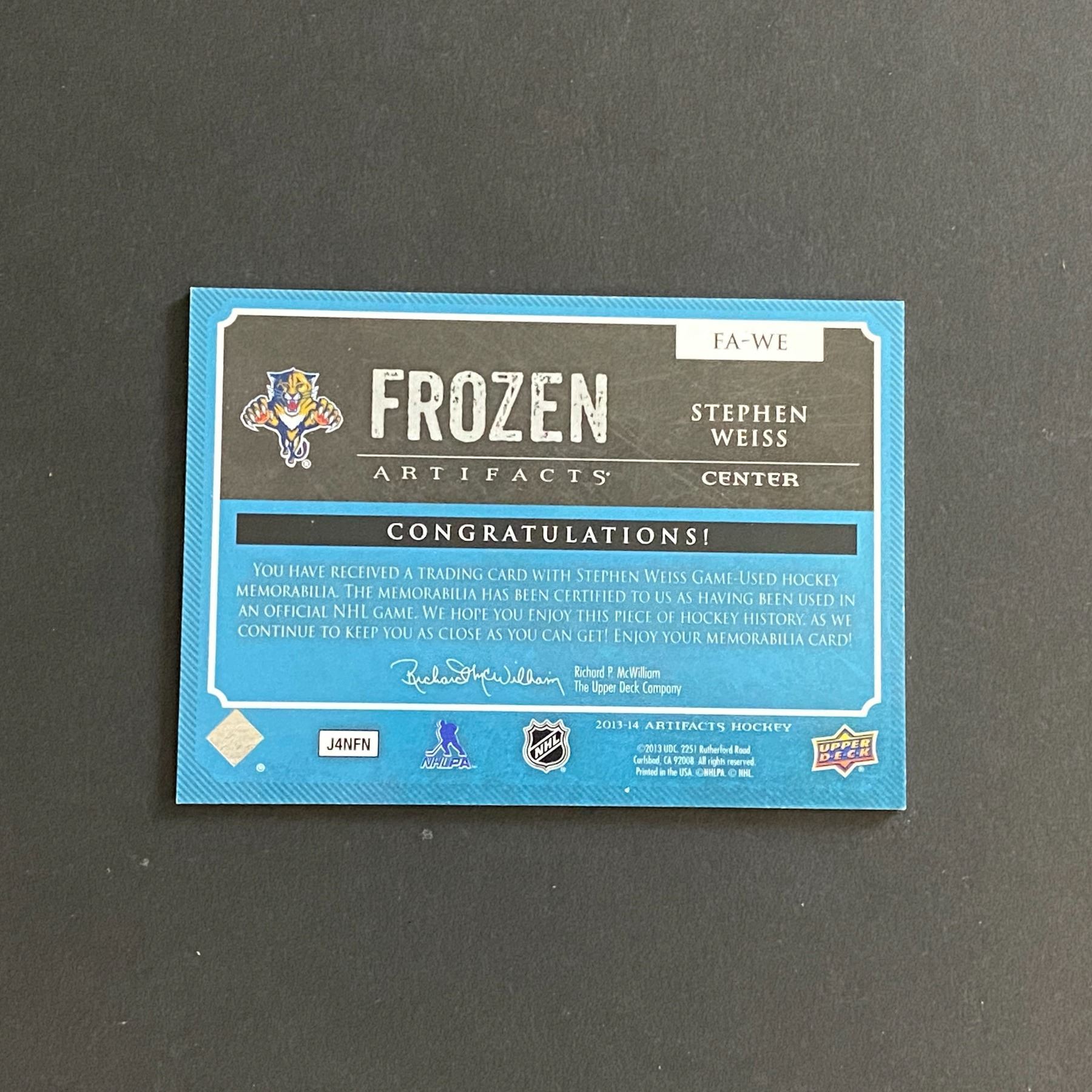 2013-14 ARTIFACTS HOCKEY STEPHEN WEISS DUAL JERSEY CARD