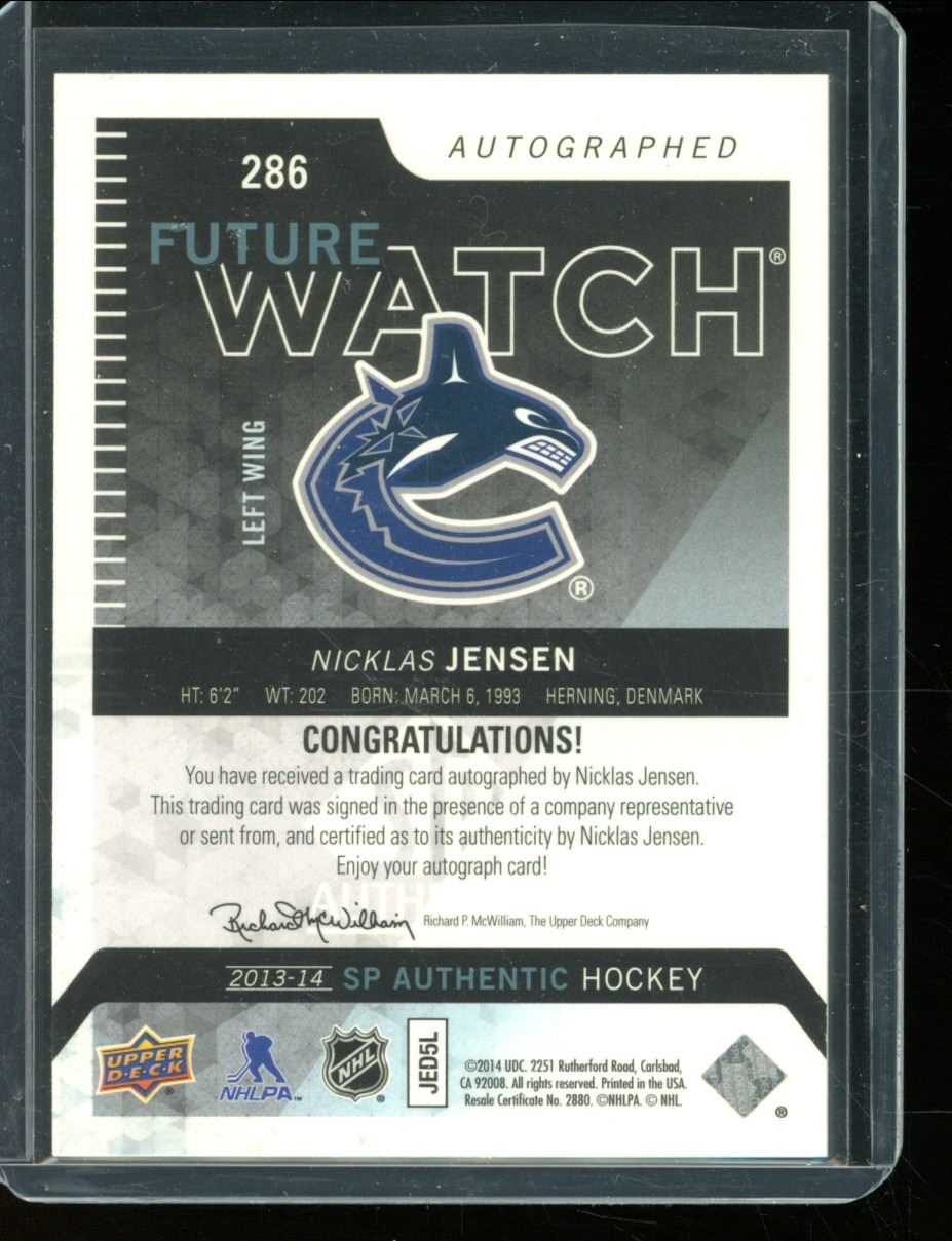 2013-14 SP Authentic #286 Nicklas Jensen Auto RC 533/999