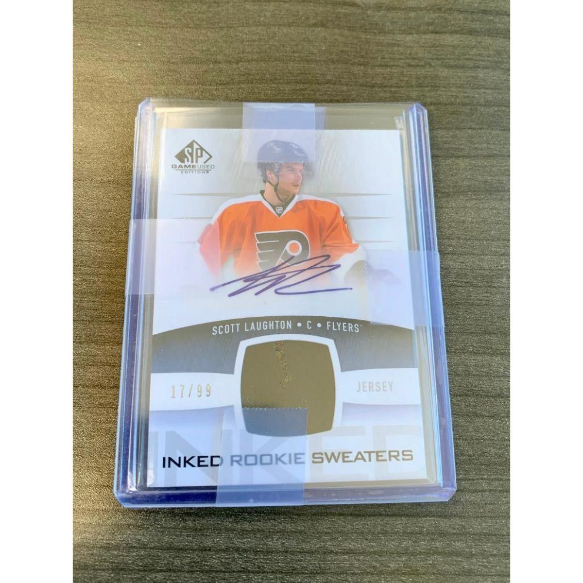 2013-14 Upper Deck Auto Inked Rookie Sweaters Worn Patch 17/99 Scott Laughton. Please view photos for further details.Â