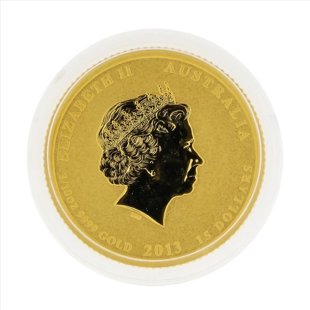 One 2013 $15 Australia 1/10 oz Lunar Year of the Snake Gold Coin BU.