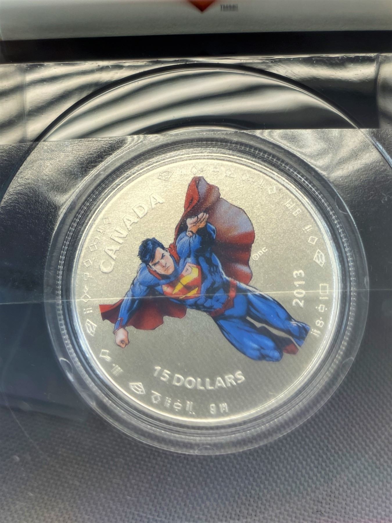 2013 $15 Fine Silver Coin Royal Canadian Mint 75th Anniversary Of Superman In Original Case And Box