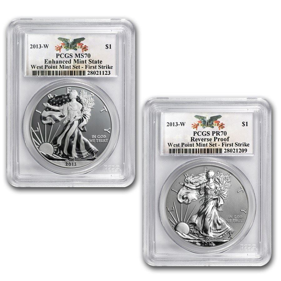 2013 2-Coin Silver Eagle Set MS/PR-70 PCGS (FirstStrike®, WP)