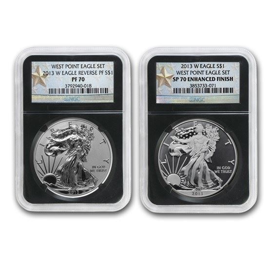 One piece 2013 2-Coin Silver Eagle Set SP/PF-70 NGC (West Point)