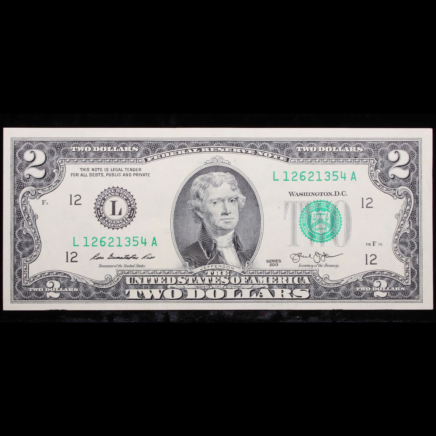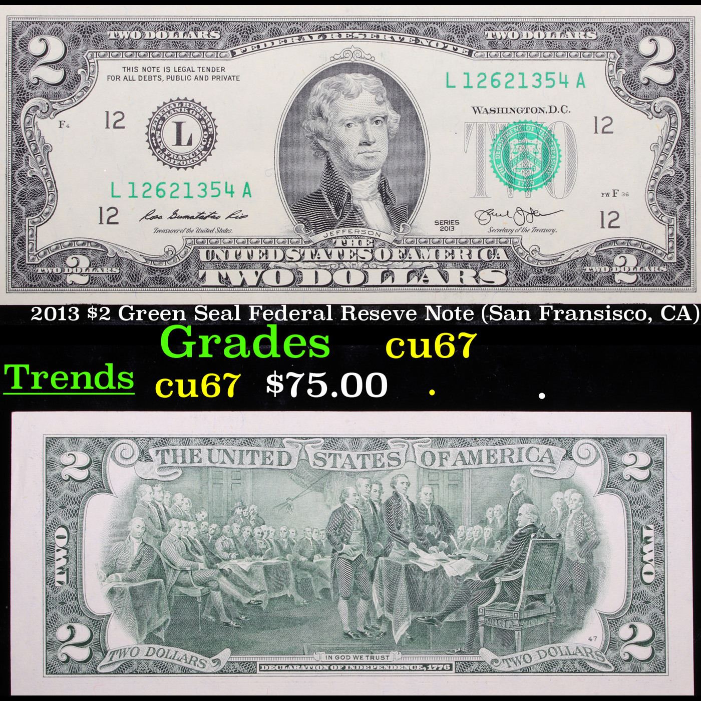2013 $2 Green Seal Federal Reseve Note (San Fransisco, CA) Grades Gem++ CU