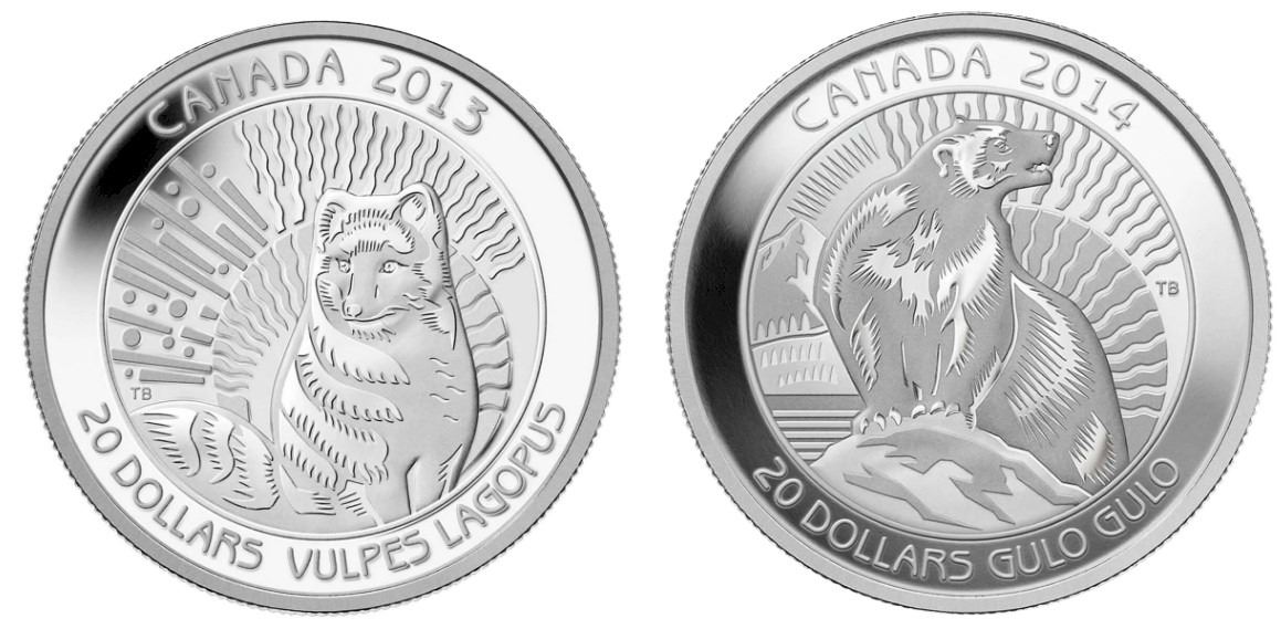 2013 $20 Arctic Fox & 2014 $20 The Wolverine - Lot of 2 Pure Silver Coins. Tax Exempt.