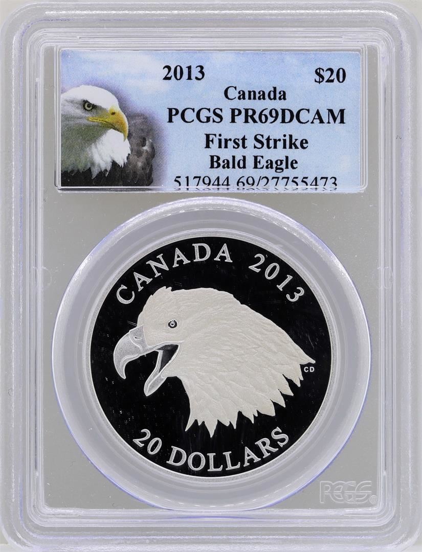 One 2013 $20 Canada Bald Eagle Silver Coin PCGS PR69DCAM. PCGS Graded.