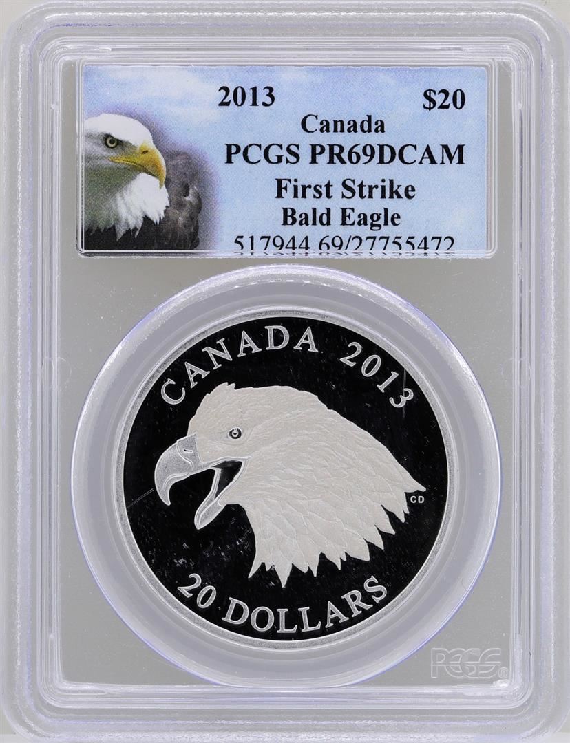 One 2013 $20 Canada Bald Eagle Silver Coin PCGS PR69DCAM. PCGS Certified.