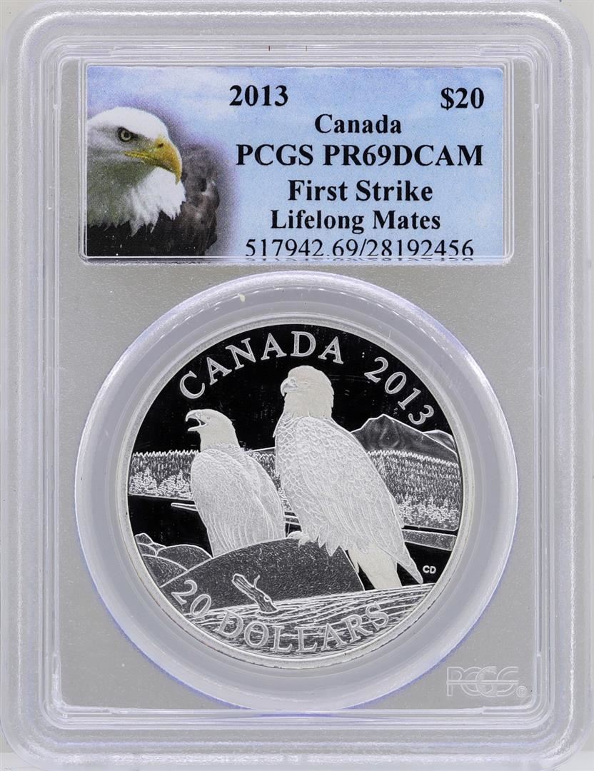 One 2013 $20 Canada Lifelong Mates Silver Coin PCGS PR69DCAM. PCGS Graded.