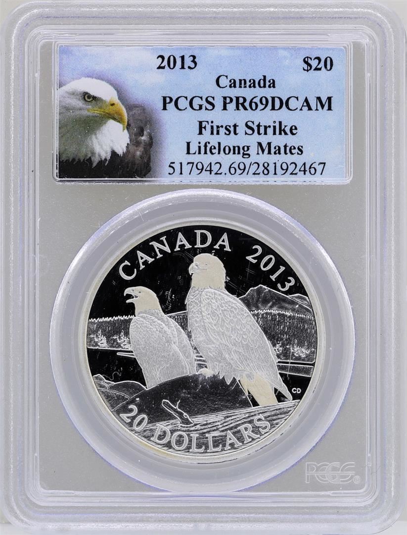 One 2013 $20 Canada Lifelong Mates Silver Coin PCGS PR69DCAM. PCGS Certified.