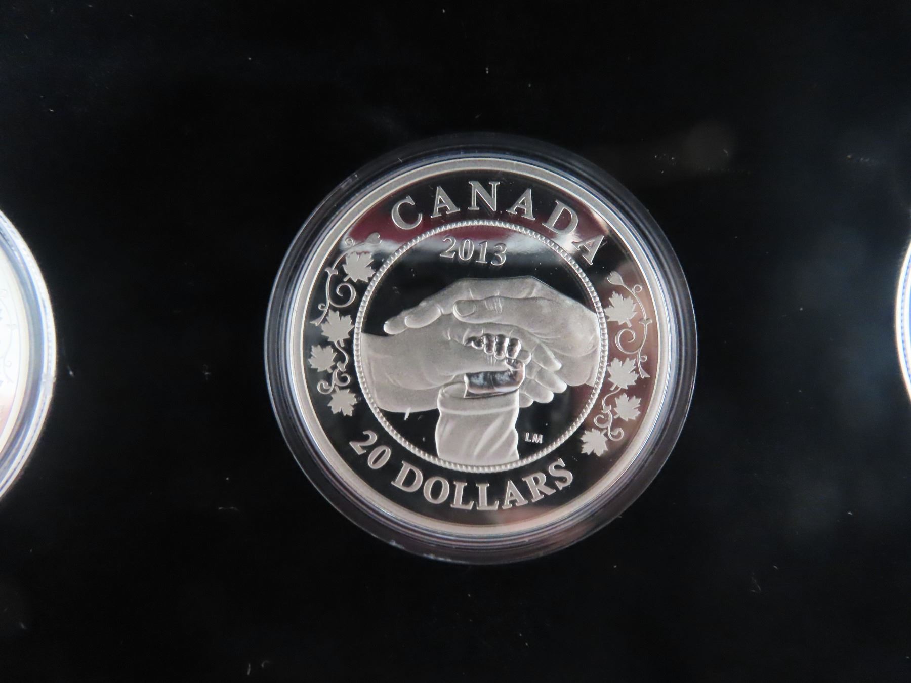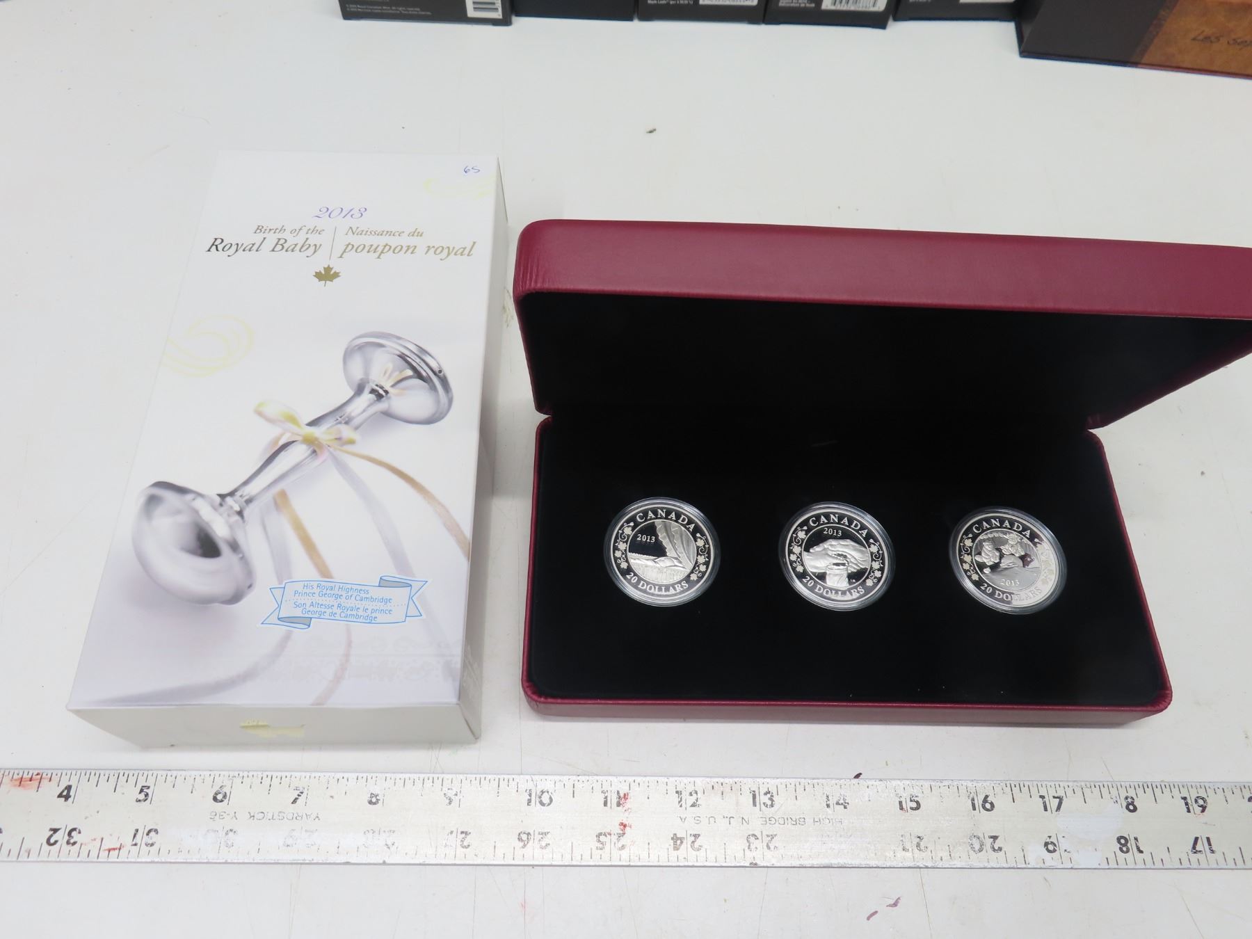 2013 $20 Complete Set of 3 Birth of the Royal Infant. Proof with Ultra Heavy Cameo. 99.99% pure Silver. Housed in its original Royal Canadian Mint case & box of issue plus Certificate of Authenticity.