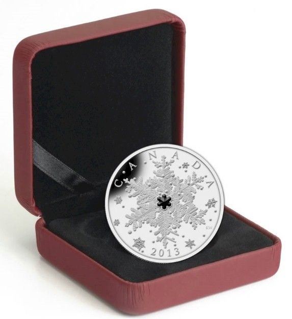 2013 $20 Fine Silver Coin - Winter Snowflake w/Black Swarovski Crystal Element. Royal Canadian Mint Issue #3776 of 10000. Comes with Original Clamshell Case and Certificate.