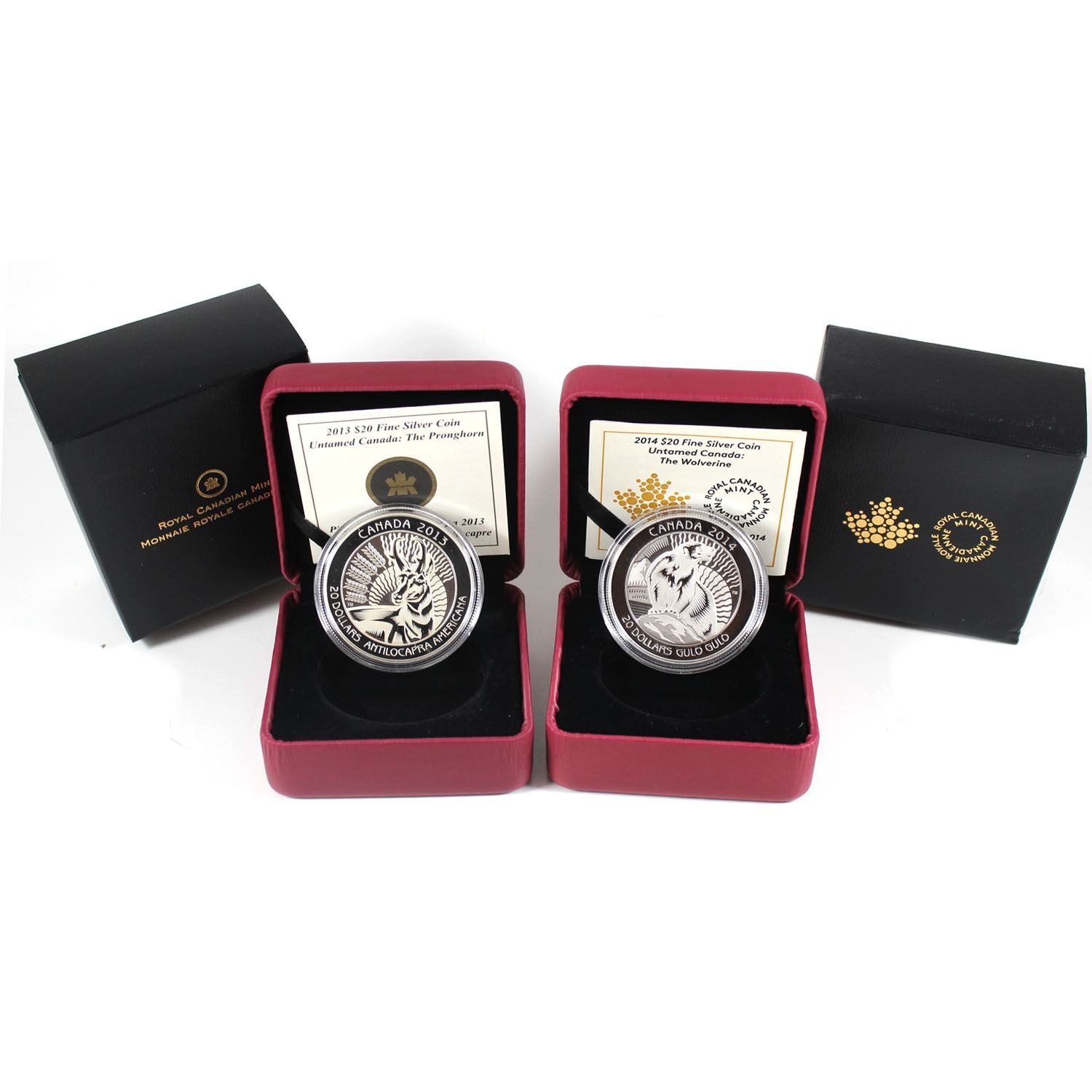 2013 $20 Untamed Canada - Pronghorn Antelope & 2014 Wolverine Fine Silver Coins. 2pcs (TAX Exempt)