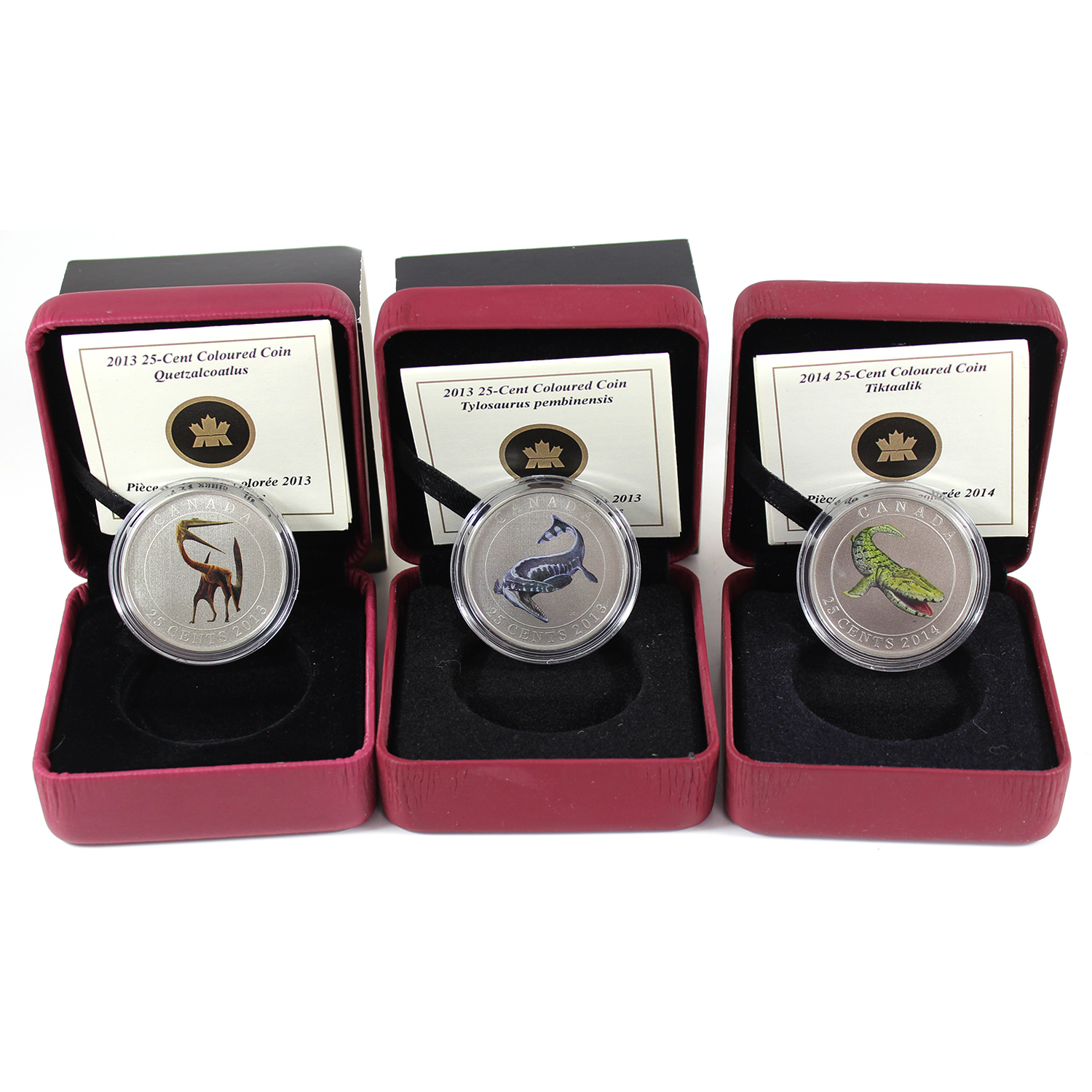 INCLUDES: 2013 Quetzalcoatlus, 2013 Tylosaurus Pembinensis & 2014 Tiktaalik Glow In The Dark (no outer sleeve). Wear to outer sleeves. 3pcs