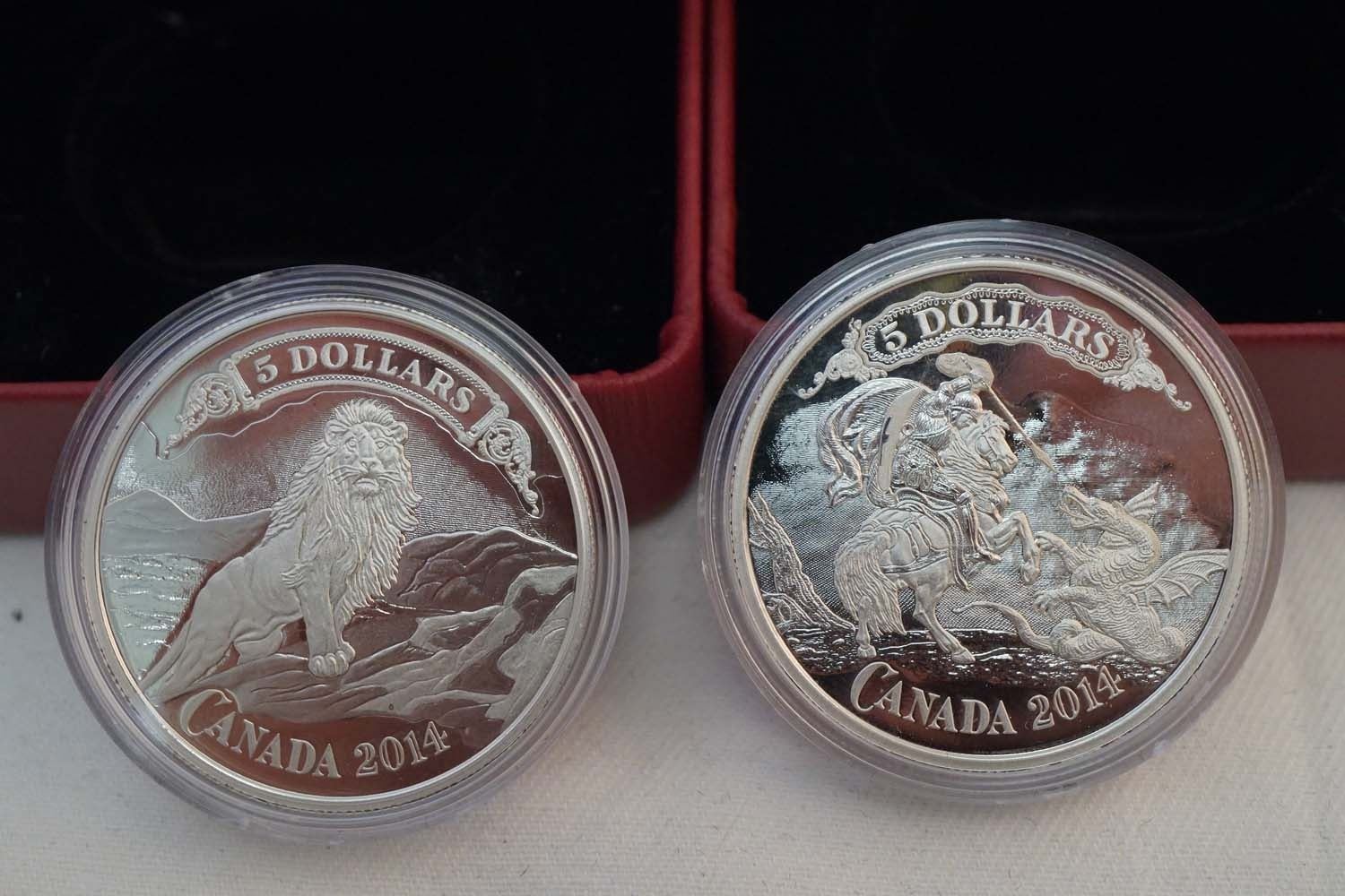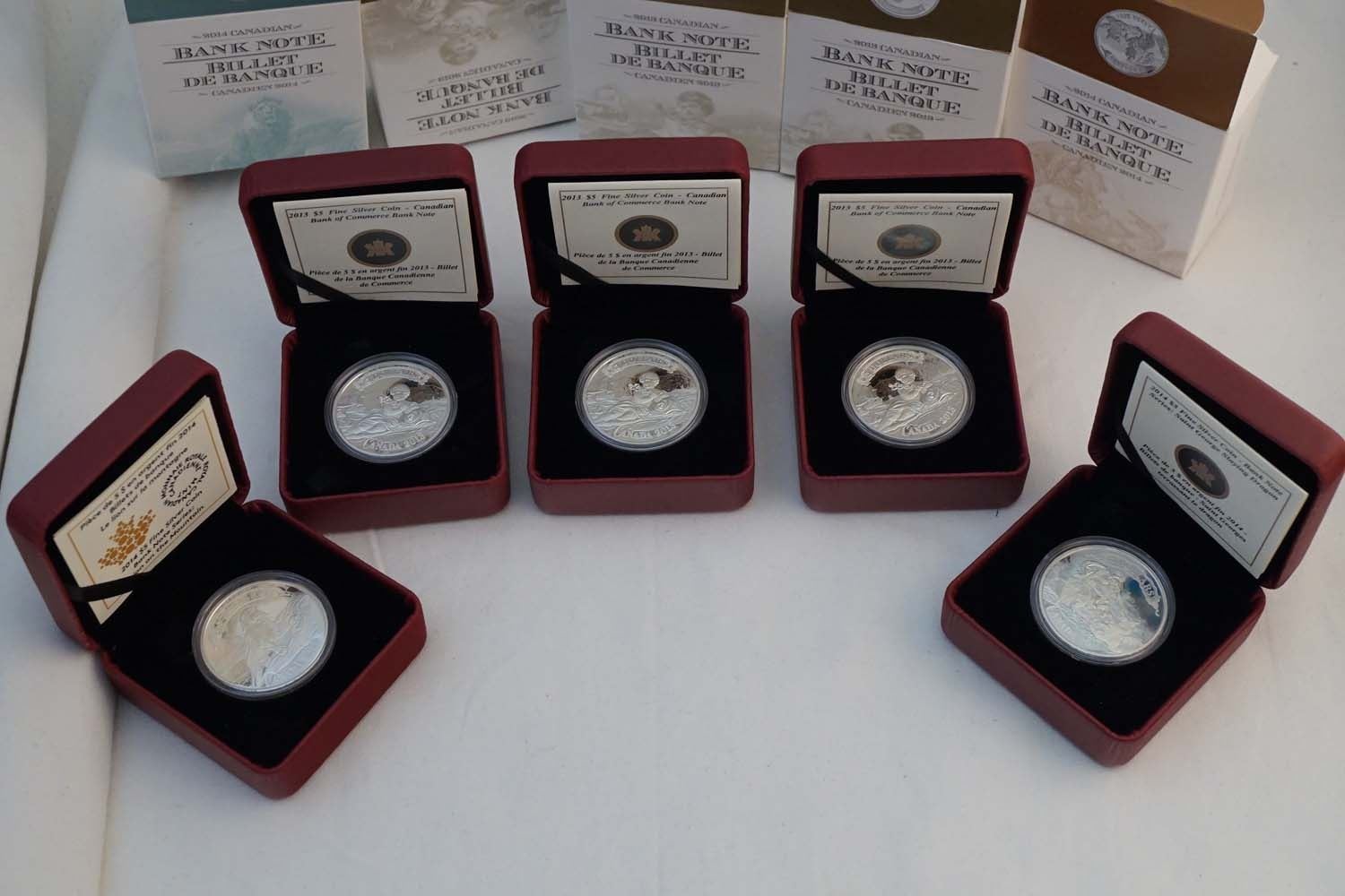 2013-2014 A Lot of 6 x $5.00 .9999 4.44 oz. AG of Cdn. Bank Note Series w/COA and Box