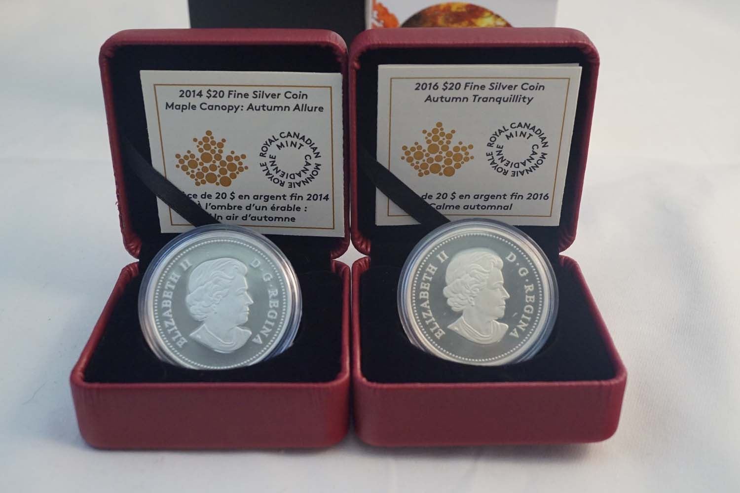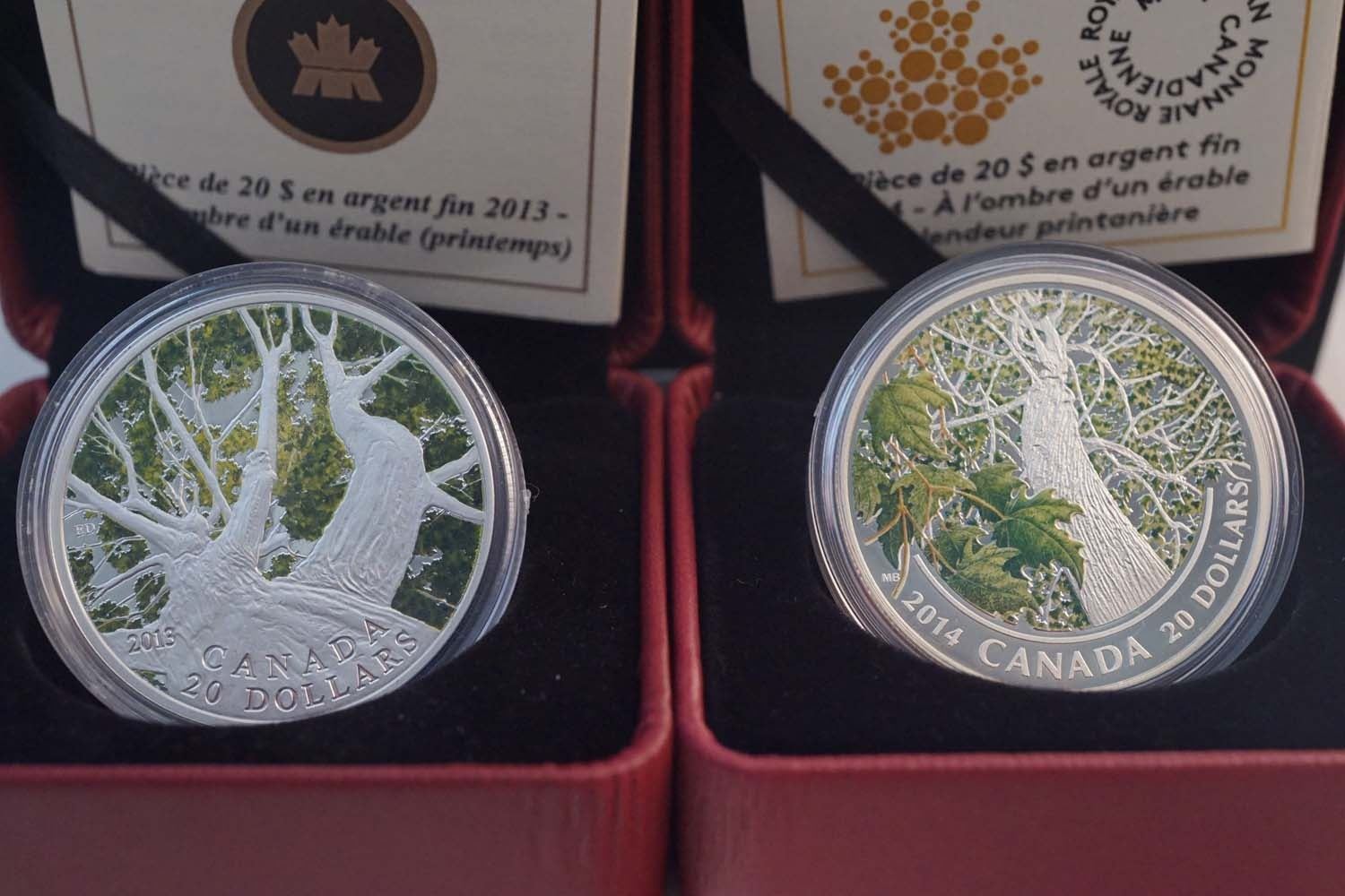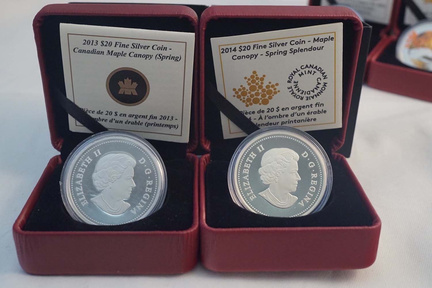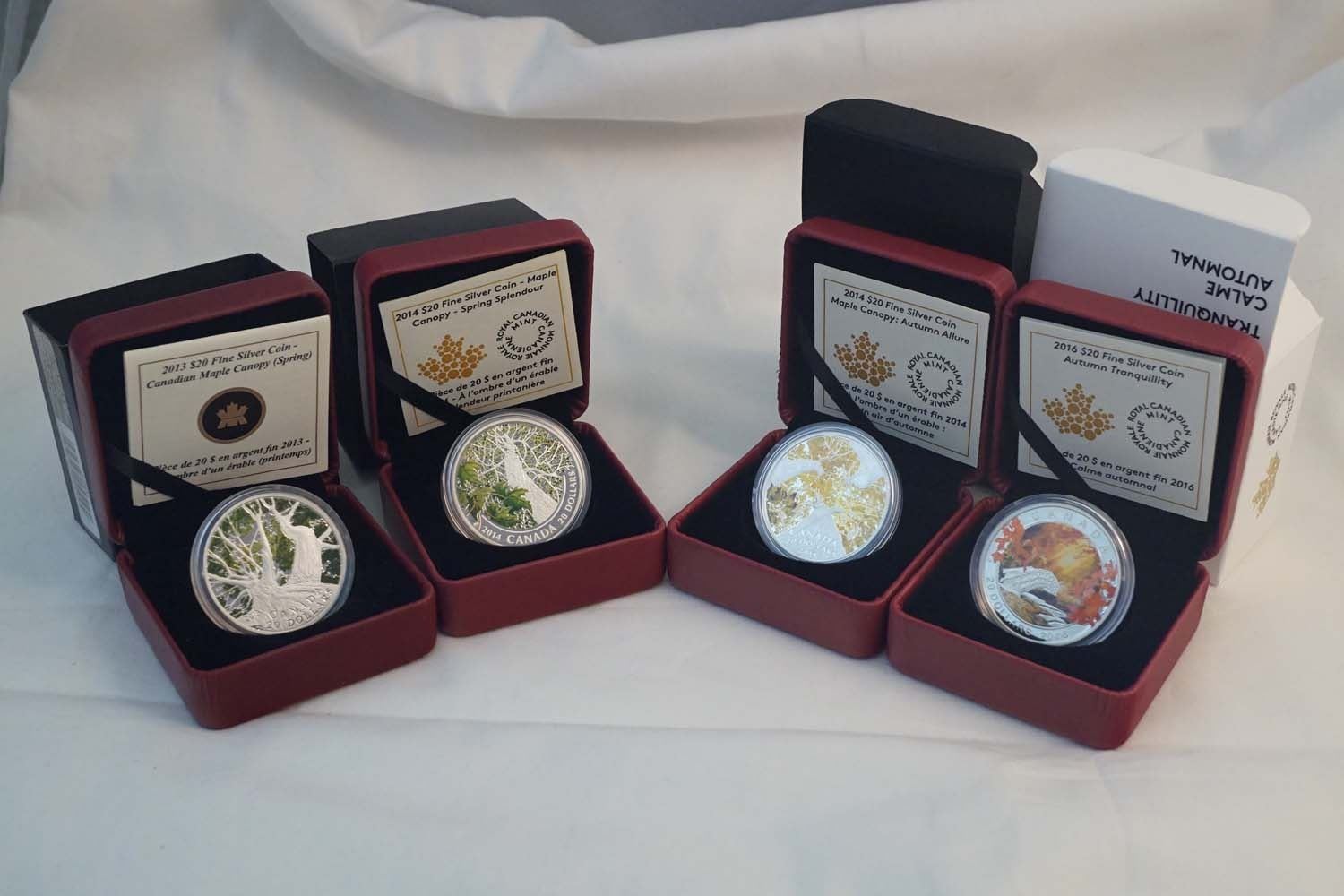 2013-2014 A Set of 4 x $20.00 Canadian Maple Canopy .9999 4.0 oz. w/COA, Box and Sleave