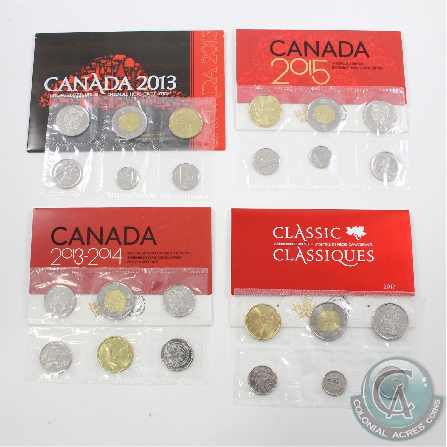 2013-2017 Canada Uncirculated Set collection. You will receive the 2013 Type 2, 2013-2014 Special Edition, 2015, and 2017 Classic. 4 sets.