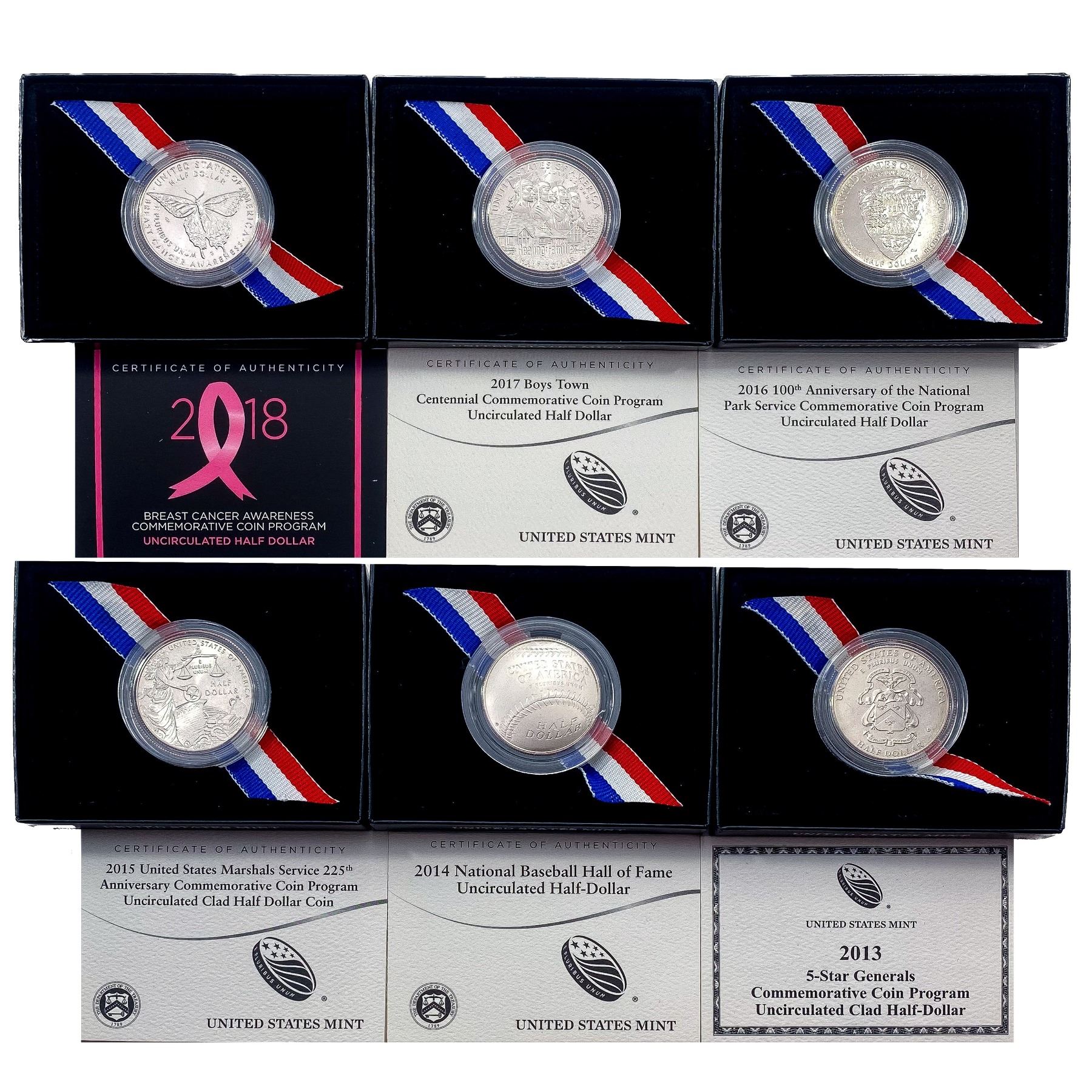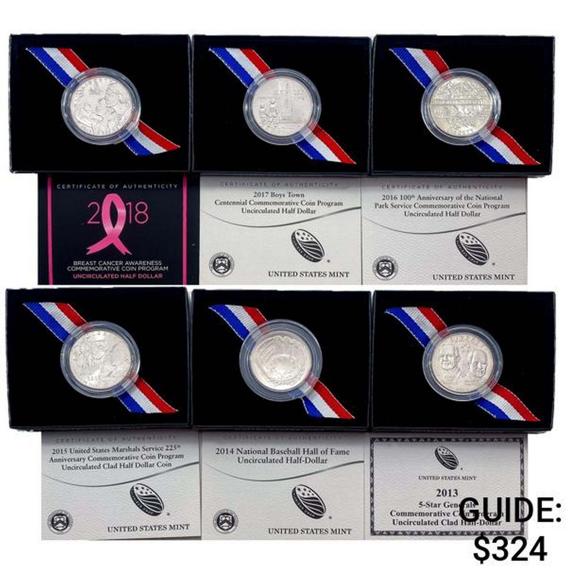 2013-2018 Clad Unc 50c Commem Lot (6 Coins)