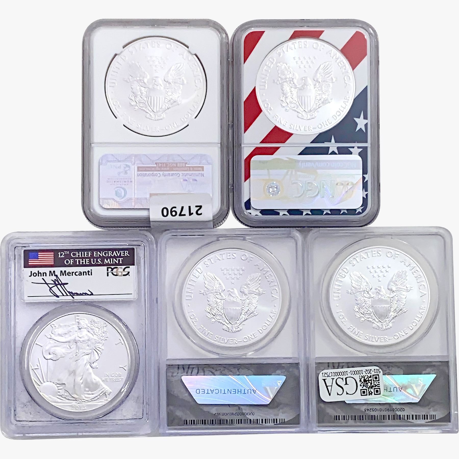 COINS AND CURRENCY LISTED IN GSA’S CATALOG AS GRADED AND ENCAPSULATED BY PCGS, NGC, ANACS, ICG, PCGS CURRENCY, PMG, PCGS BANKNOTE GRADING, CMC OR ANY OTHER THIRD-PARTY GRADING SERVICE ARE LIKEWISE SOLD “AS-IS” EXCEPT AS EXPRESSLY SET FORTH HEREIN. ALL THIRD-PARTY GRADING SERVICE GUARANTEES, INCLUDING AUTHENTICITY, ARE THE SOLE RESPONSIBILITY OF THE THIRD-PARTY GRADING SERVICE AND NOT WARRANTIES OR GUARANTEES OF GSA. BIDDERS SHOULD CONTACT THESE THIRD-PARTY GRADING SERVICES DIRECTLY WITH RESPECT TO ANY CLAIMS OR QUESTIONS THEY MAY HAVE CONCERNING THEIR GUARANTEES AND WARRANTIES. BIDDERS ACKNOWLEDGE AND AGREE THAT AUCTIONEER IS NOT BOUND BY OR LIABLE FOR ANY OPINION OR CERTIFICATION BY ANY THIRD-PARTY GRADING SERVICE. REMOVAL OF A PRODUCT FROM ITS PROTECTIVE CASING OR HOLDER OR ALTERATION OF ANY COIN HOLDER WAIVES ALL RIGHTS CONCERNING THE PRODUCT CONTAINED THEREIN.