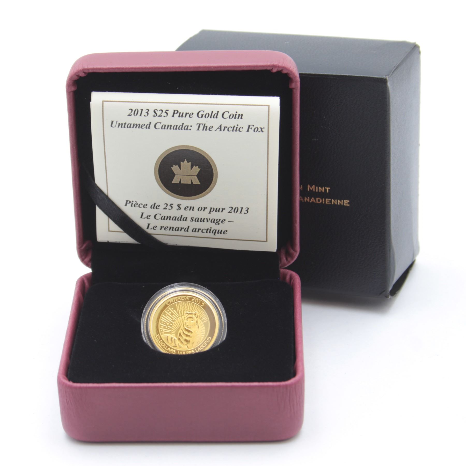 2013 $25 Arctic Fox 1/4oz Fine Gold Coin (Sleeve is lightly bent). Mintage of only 1500! (TAX Exempt)
