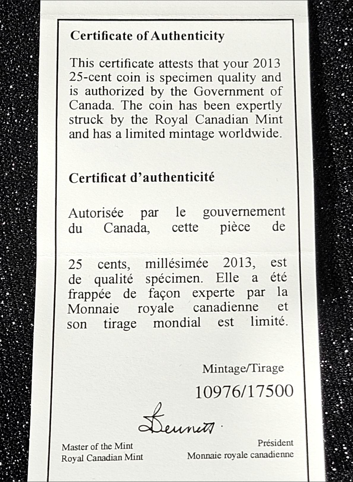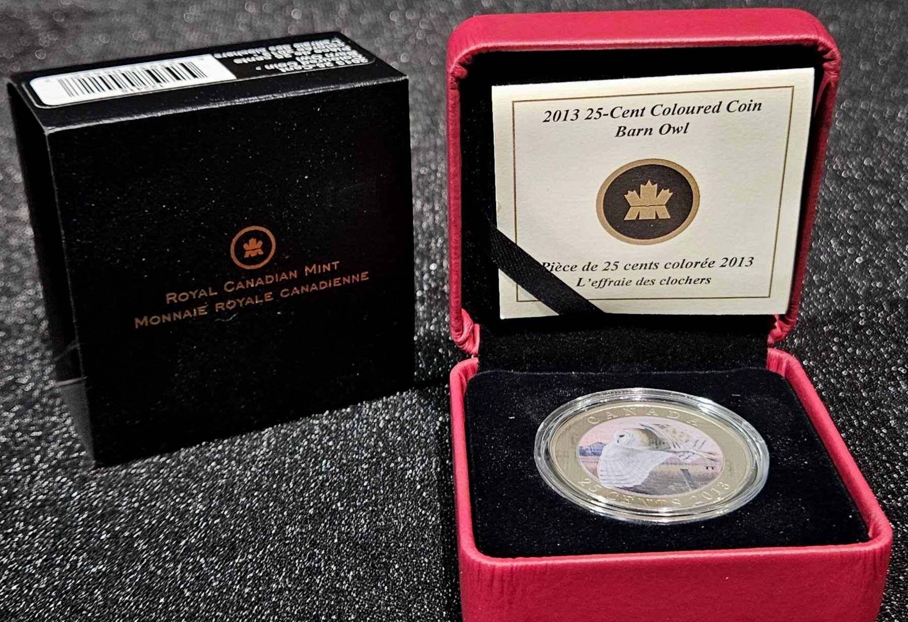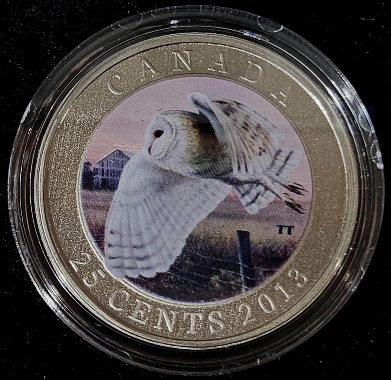 This 2013 25 cent coin is the 12th in an extremely popular series featuring birds of Canada. Although the nominal face value is 25 cents, this is very different from a circulation issue coin. This collector issue features a large 35 mm diameter, and is struck and coloured using advanced striking and coin painting processes. Mintage is 10976/17500.