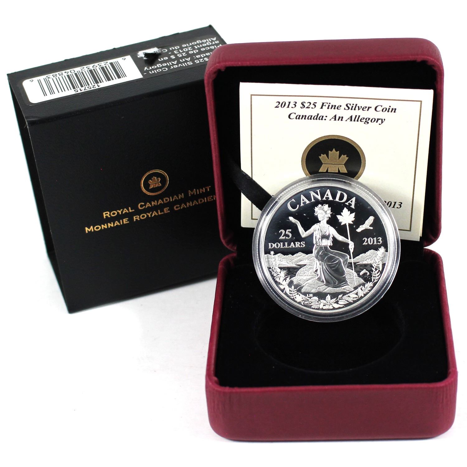 2013 $25 Canada: An Allegory Fine Silver Coin (Tax Exempt) Scuffed capsule, torn label.