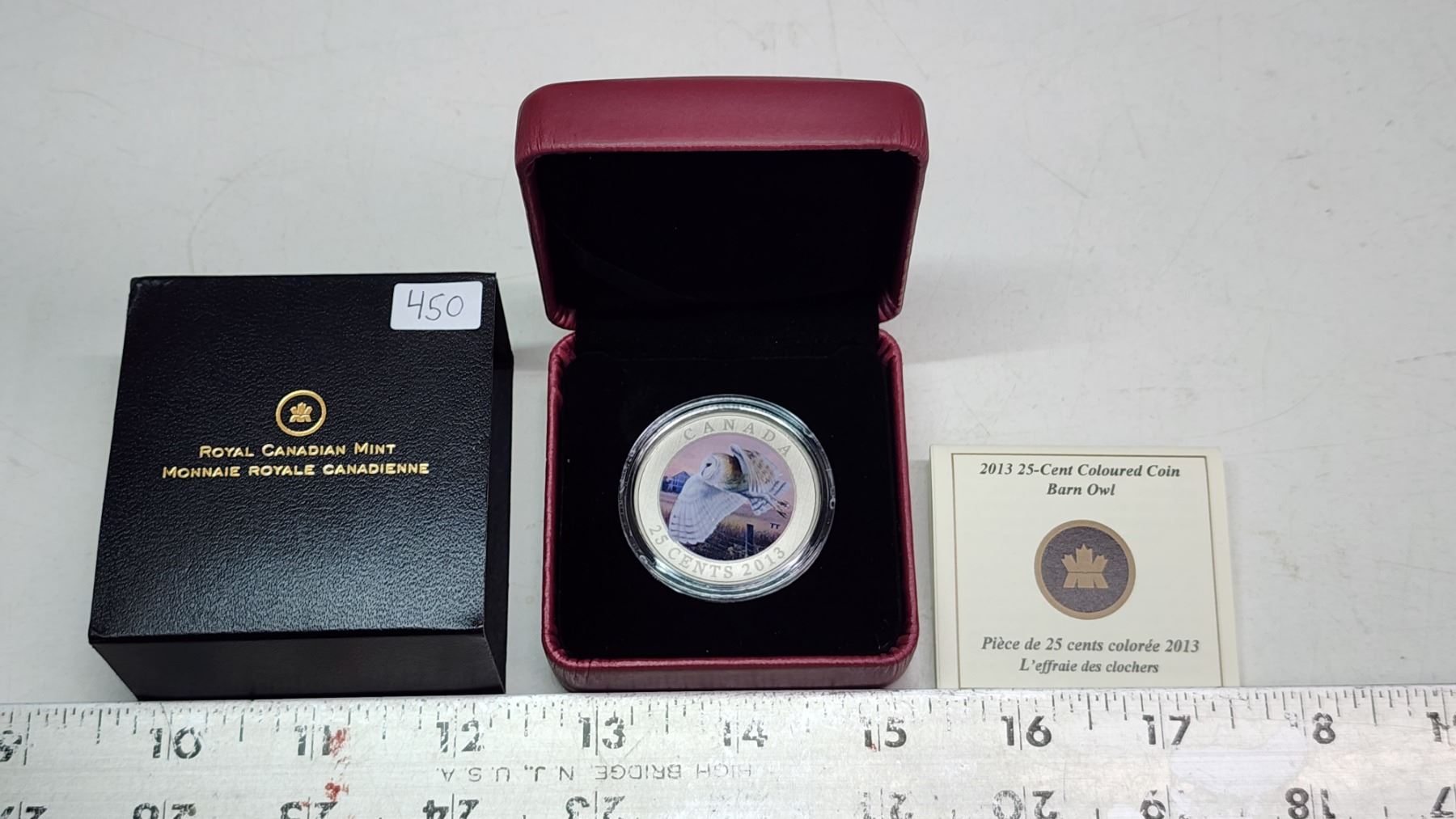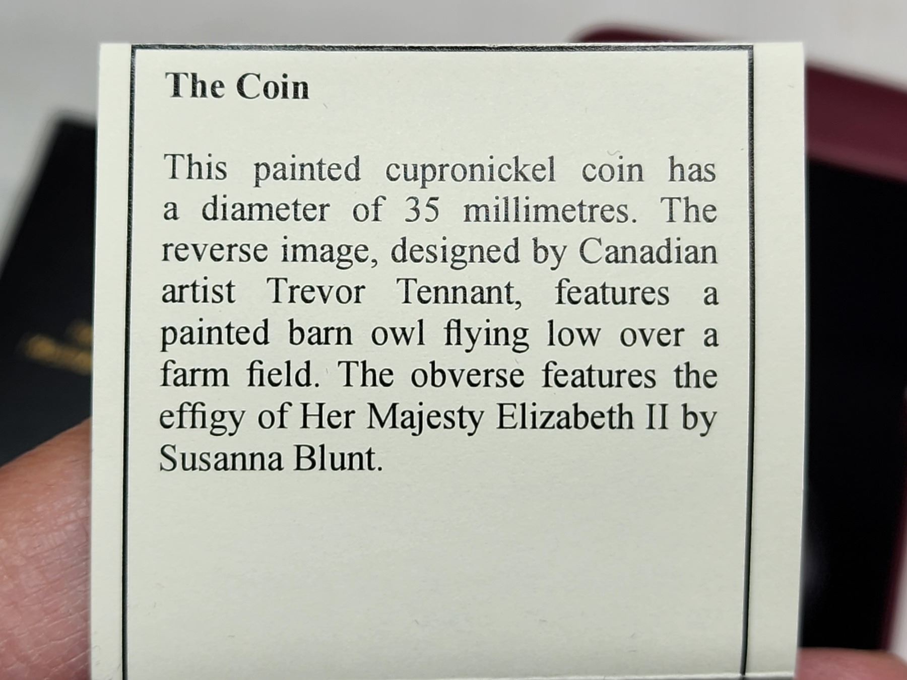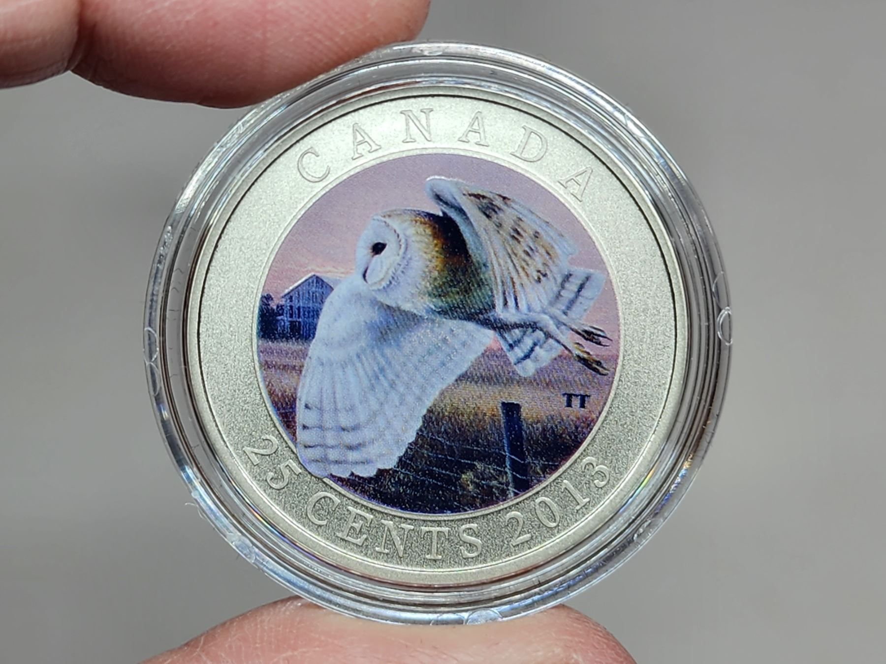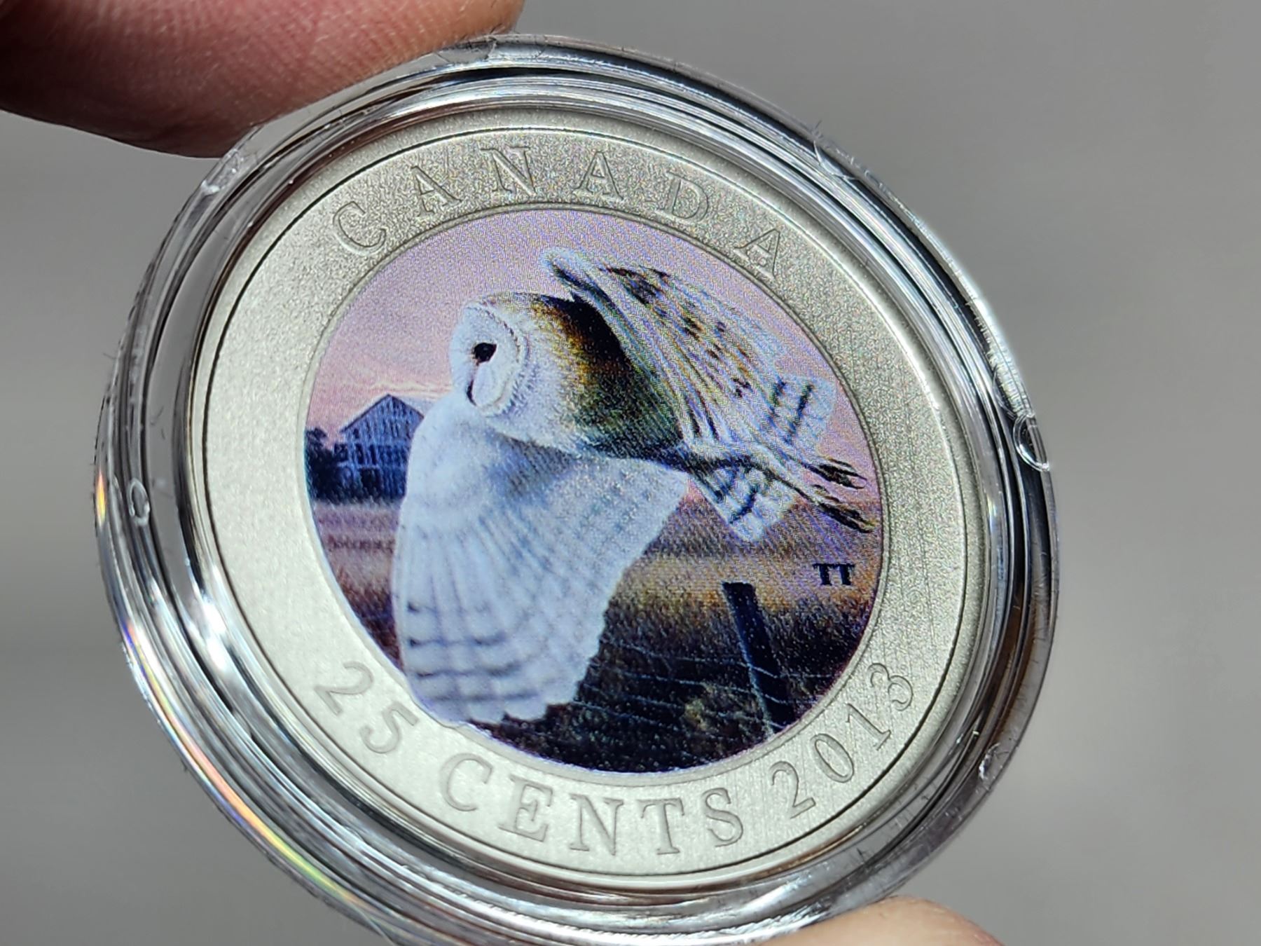 2013 25 Cent Colourized Barn Owl. Specimen. Housed in its original RCM case & box of issue.