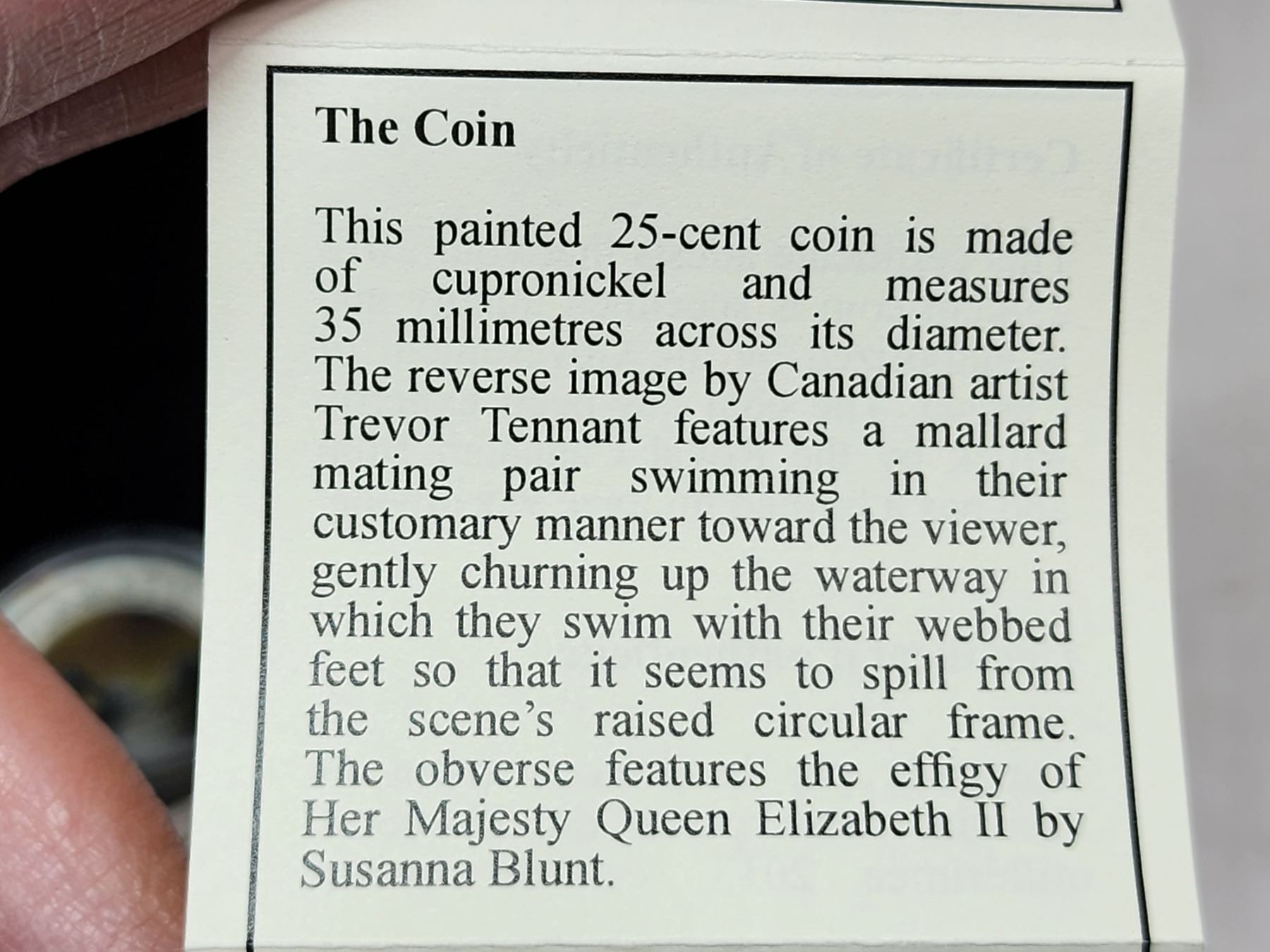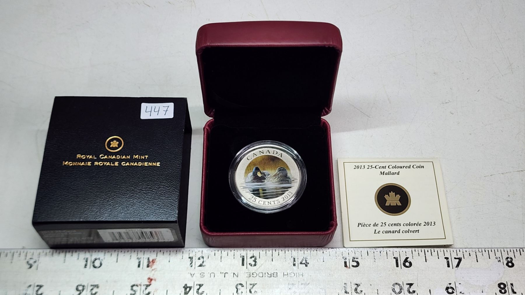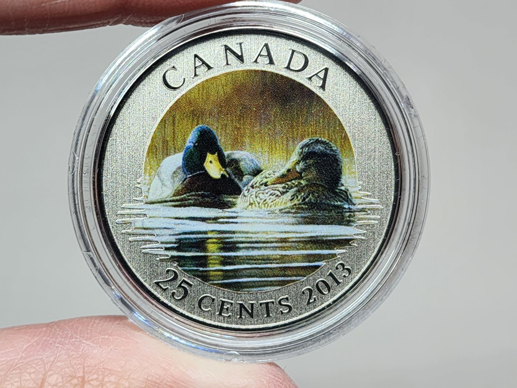 2013 25 Cent Colourized Mallard Duck. Specimen. Housed in its original RCM case & box of issue.