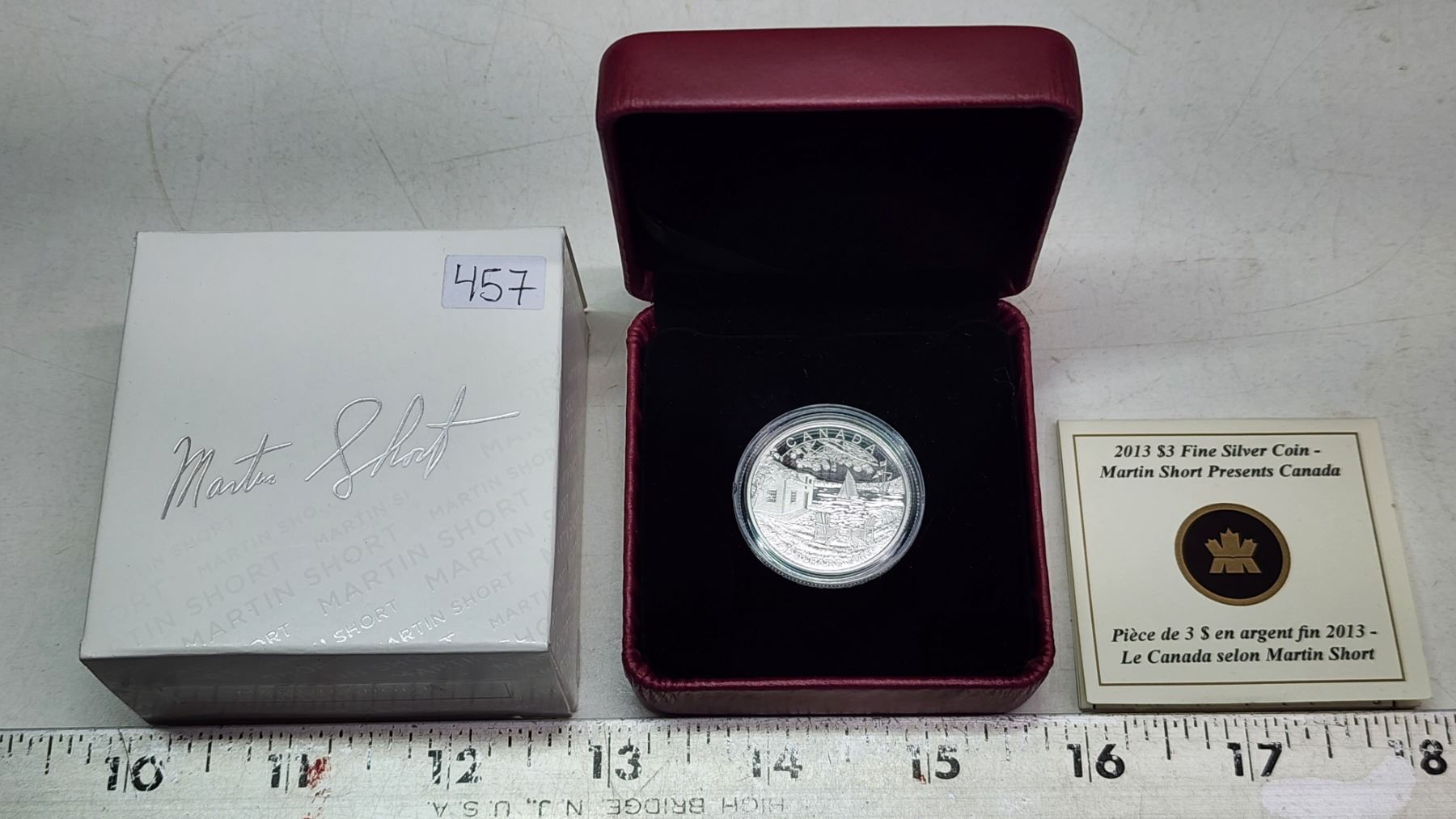 2013 $3 Martin Short Presents Canada. 99.99% pure Silver. Proof. Housed in its original RCM case & box of issue.