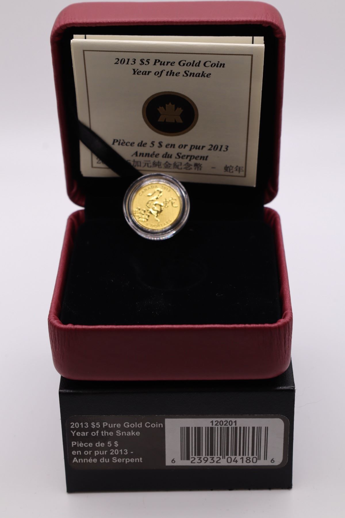 2013 $5 1/10 Fine Gold Coin. Year of the Snake (tax exempt)