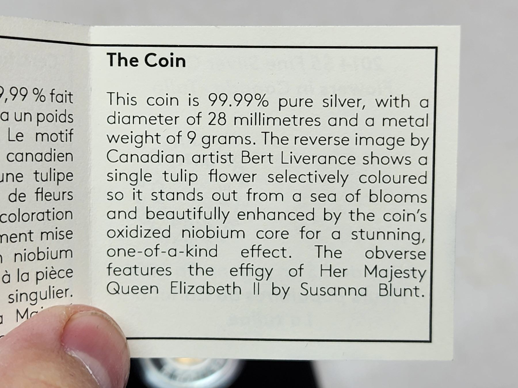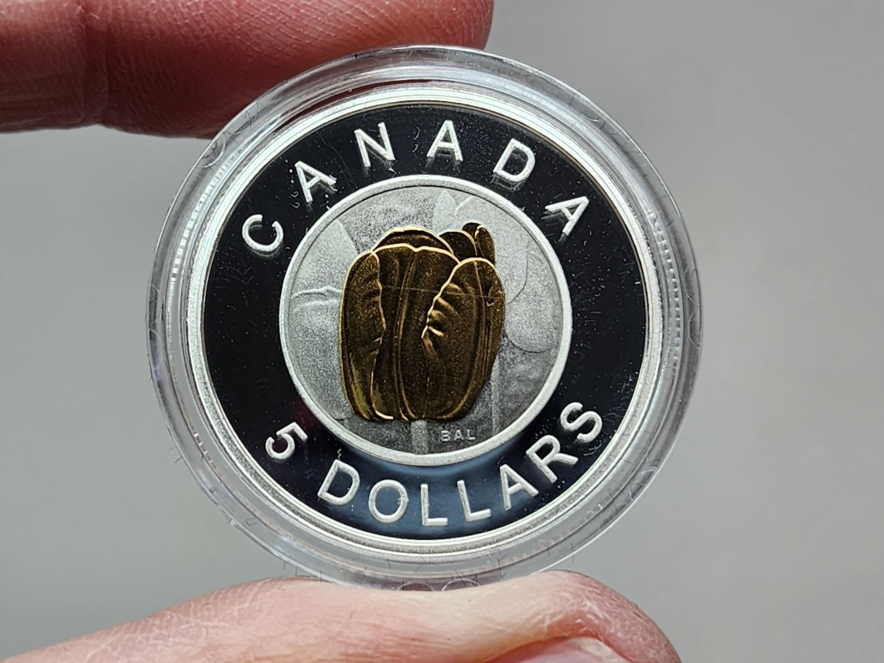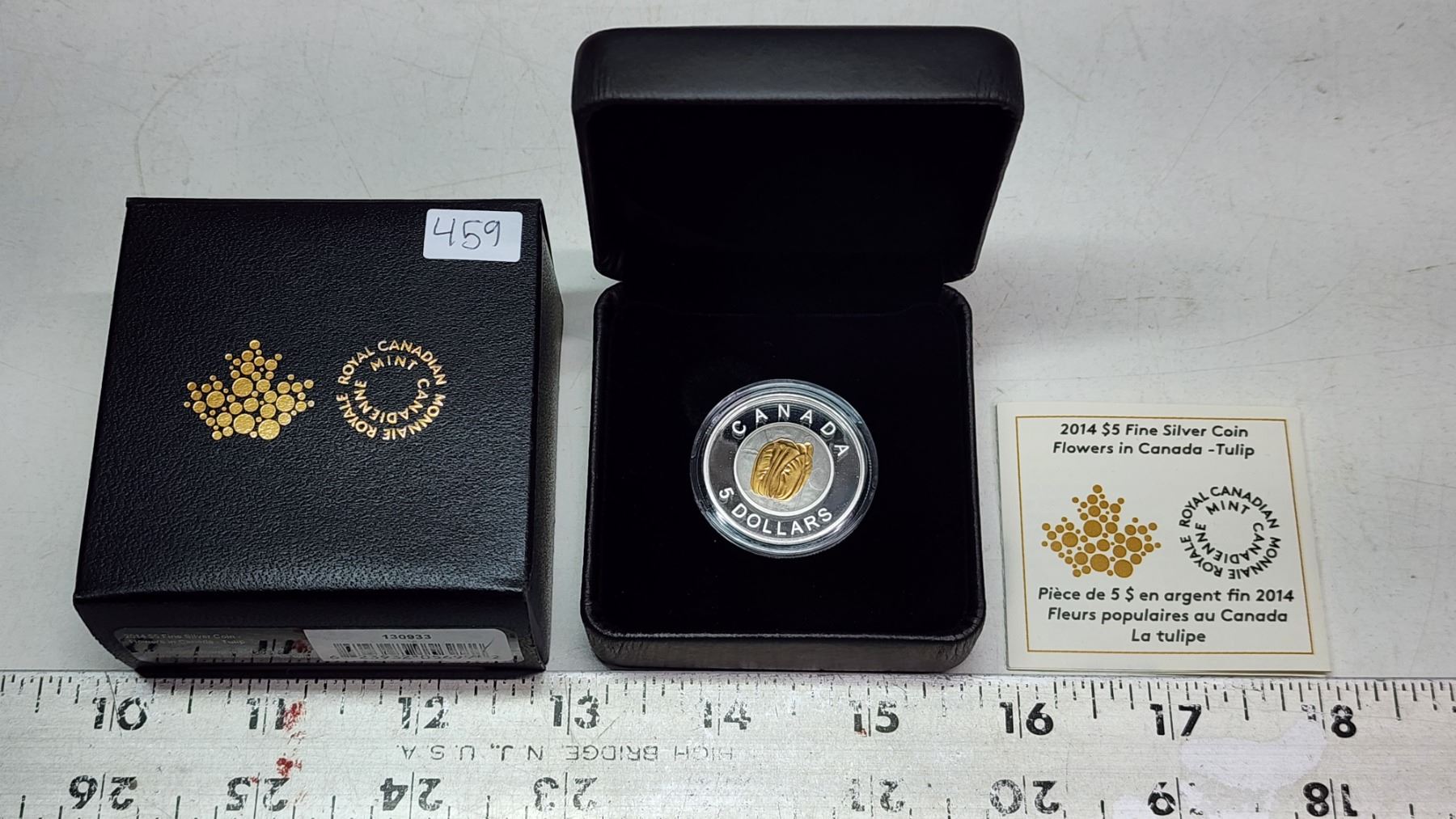 2013 $5 Flowers in Canada: Tulip. 99.99% pure Silver. Coloured. Proof. Housed in its original RCM case & box of issue.